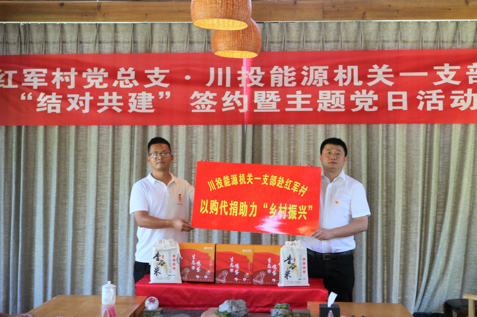 活動(dòng)現(xiàn)場(chǎng),雙方簽訂《企地黨支部結(jié)對(duì)共建協(xié)議書(shū)》,共同聆聽(tīng)紅色微黨課,重溫入黨誓詞,重溫紅色記憶、汲取奮進(jìn)力量。川投能源機(jī)關(guān)第一黨支部向紅軍村黨總支贈(zèng)送了精選黨建類(lèi)書(shū)籍并開(kāi)展“以購(gòu)代捐”活動(dòng),以消費(fèi)幫扶助力鄉(xiāng)村振興。