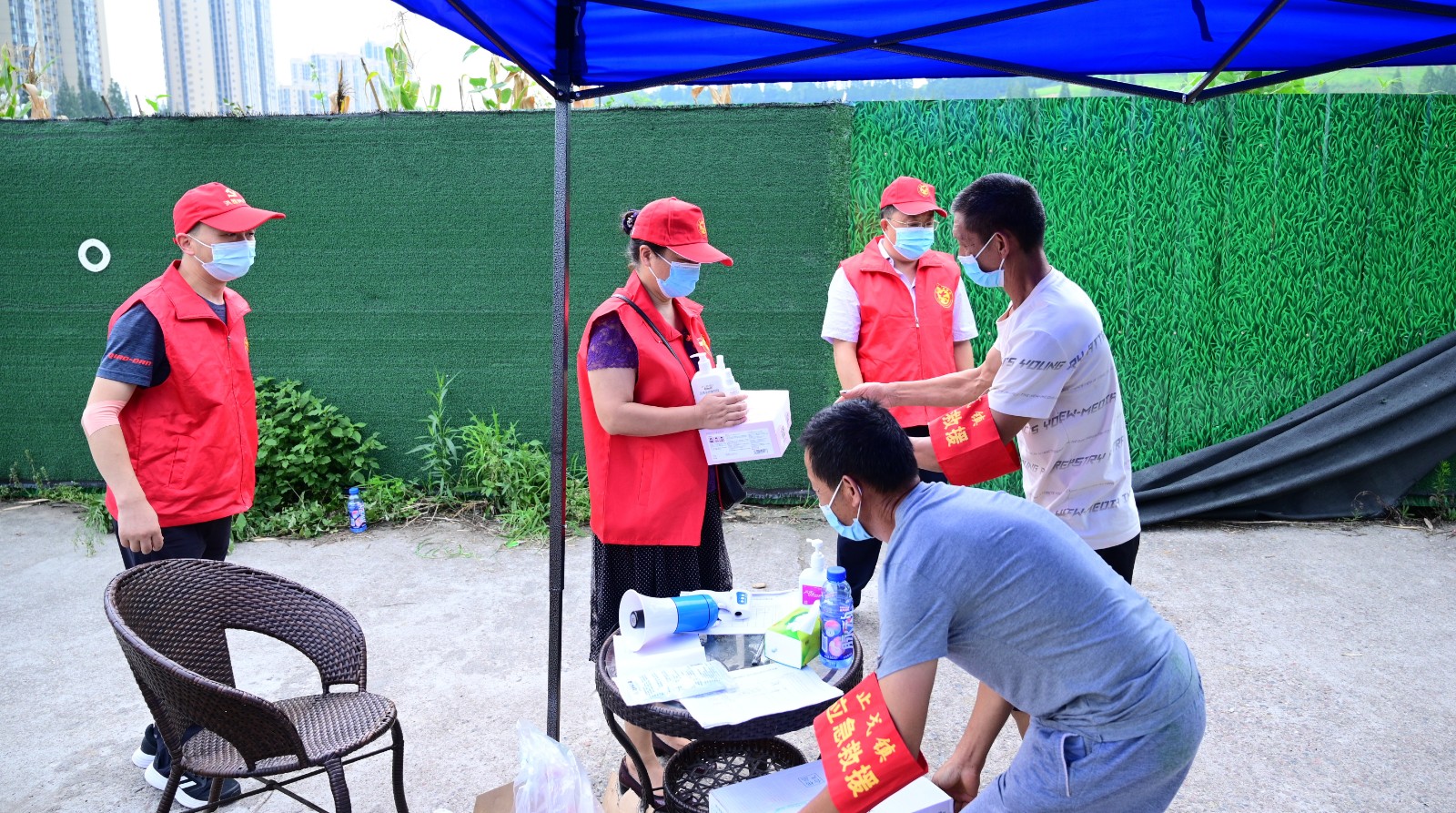 烈日高溫使豆大的汗珠從謝愛東的額頭不斷滑落,每當(dāng)其他志愿者提出換她休息時,“沒問題,我可以的”便是不變的回應(yīng)。“與家鄉(xiāng)人民一道共度難關(guān),哪怕再熱、再苦、再累都值得。”