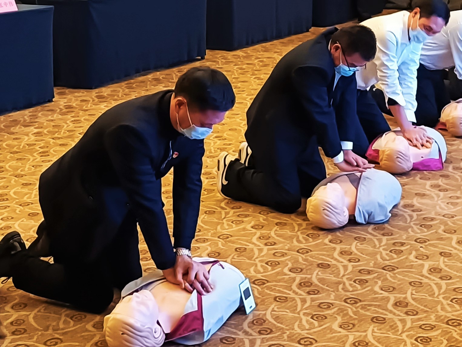 學(xué)以致用,鞏固認(rèn)知。通過培訓(xùn)講師的引導(dǎo),在場員工順利實現(xiàn)應(yīng)急救護(hù)理論與技能實操的聯(lián)動。強(qiáng)運動量的力竭、十指緊扣的脹痛絲毫未能阻擋全員積極參與心肺復(fù)蘇術(shù)實操。跟隨節(jié)拍器的按壓節(jié)奏,從伊始的“眼神聚焦位置錯誤”、“手臂發(fā)力部位不當(dāng)”、“未使人體模具腹部有效隆起”到滿分學(xué)員大量涌現(xiàn),實踐熱情度不斷高漲,技能掌握度顯著提升,為“危難時刻,我有準(zhǔn)備”奠基。