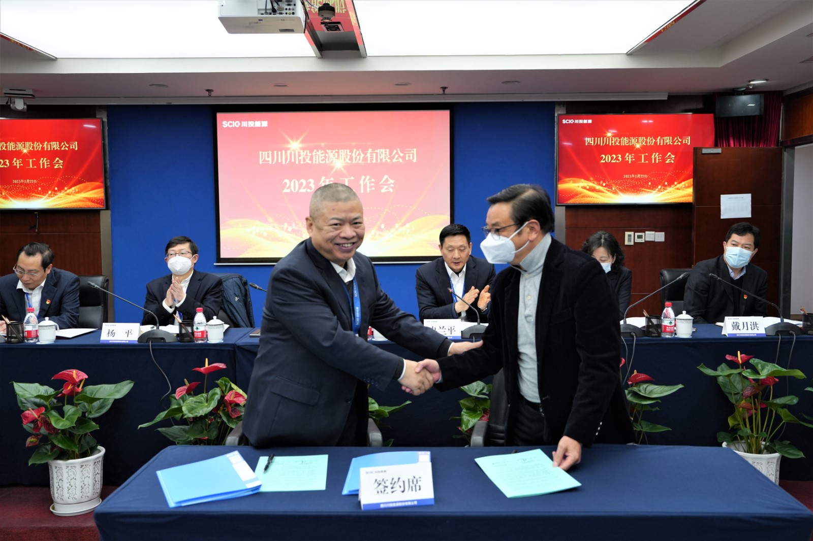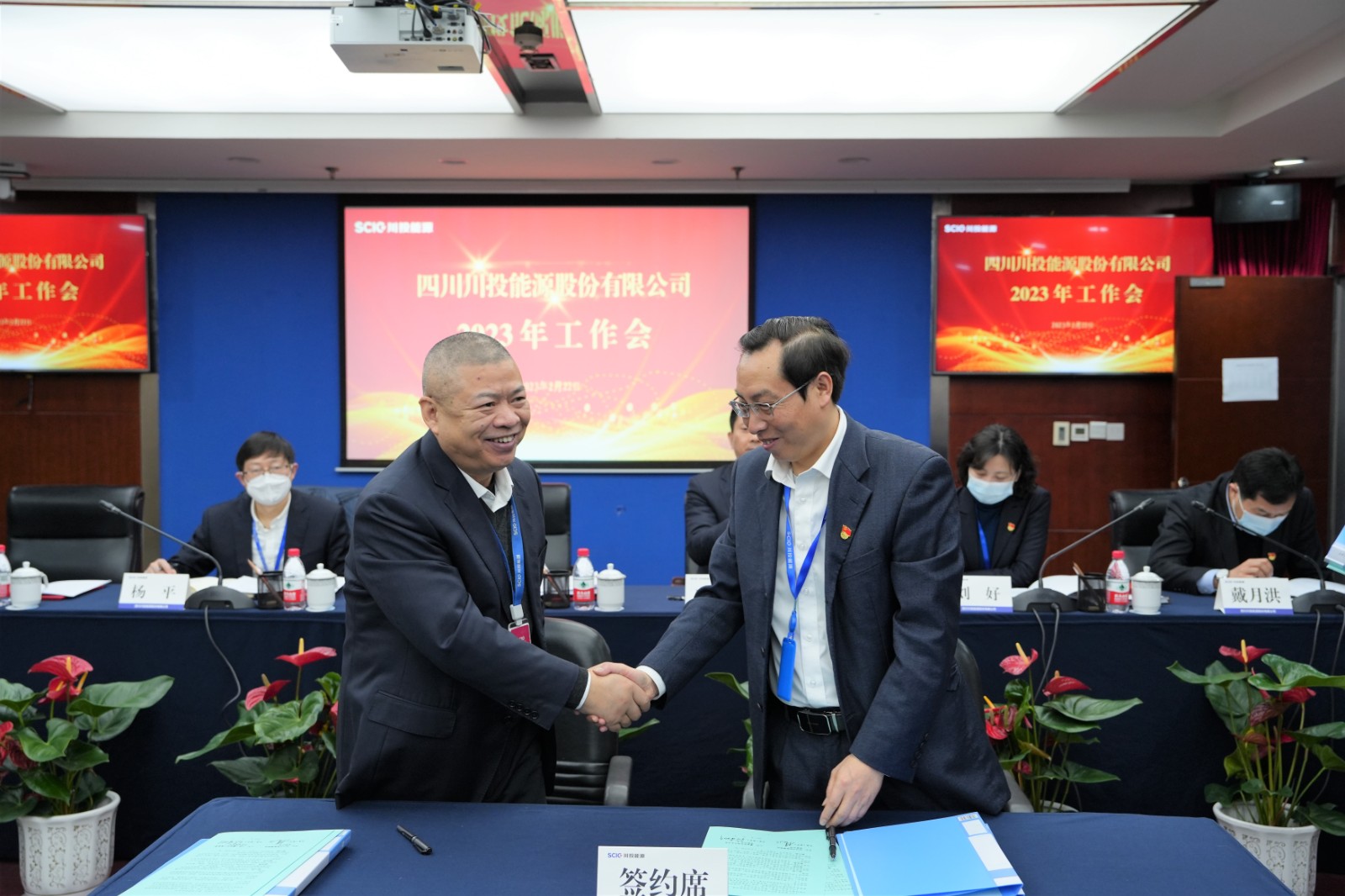 會上,楊洪與所屬企業(yè)負責(zé)人代表簽署了《經(jīng)營業(yè)績責(zé)任書》《安全生產(chǎn)、環(huán)境保護工作目標(biāo)責(zé)任書》;冉蘭平宣讀2022年度優(yōu)秀員工表彰通報;黨委委員、副總經(jīng)理、總法律顧問楊平作2022年安全環(huán)保工作總結(jié)及2023年重點工作安排;黨委委員、財務(wù)總監(jiān)劉好傳達川投集團2023年工作會精神。