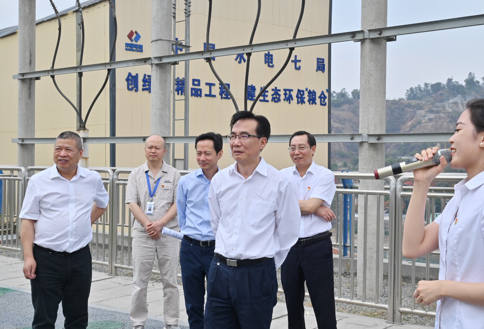 吳曉曦一行先后來到銀江水電站施工變電站觀景平臺、上游圍堰詳細(xì)了解項目整體規(guī)劃、建設(shè)意義、工期計劃、目前施工進(jìn)度、安全環(huán)保及防洪度汛等情況。