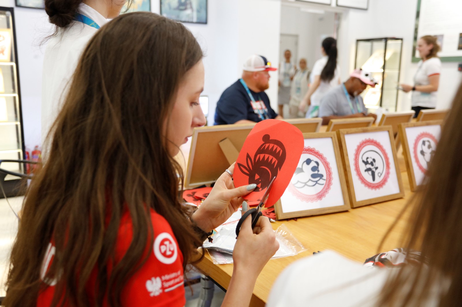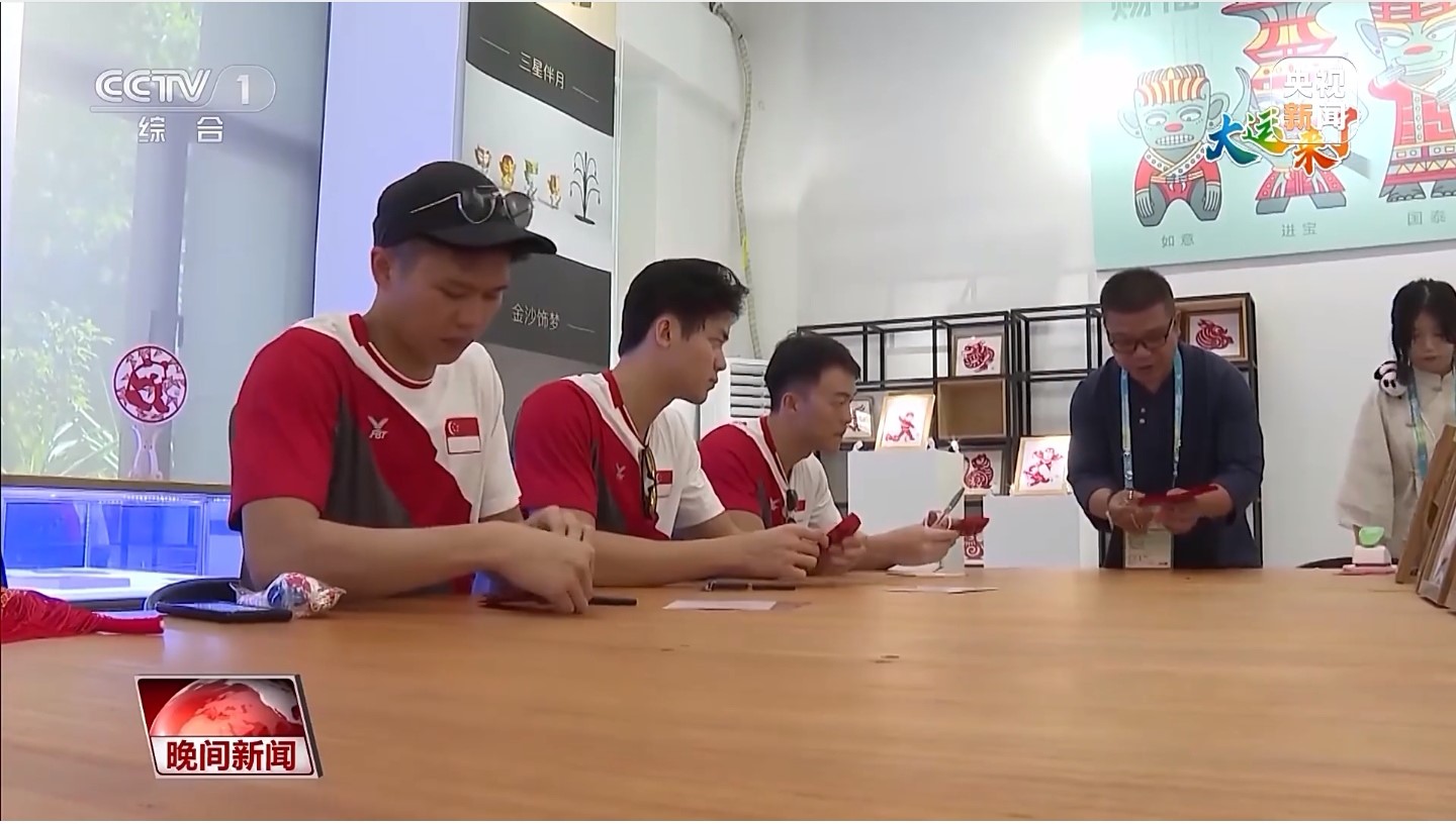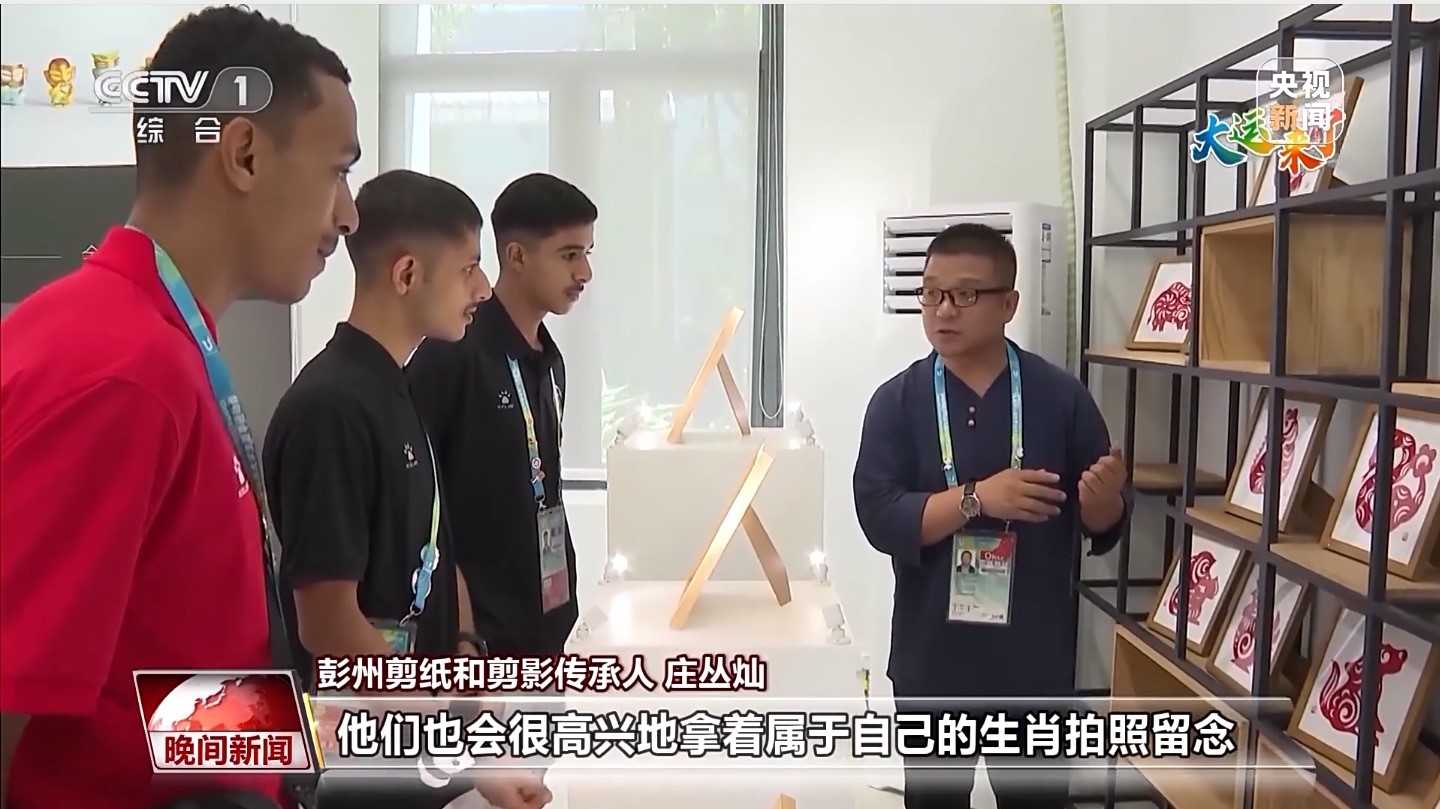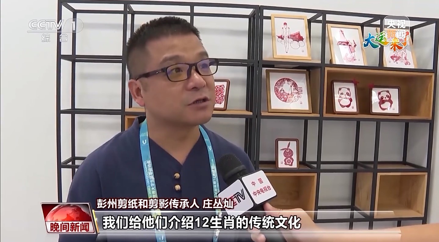 大運(yùn)會期間,成都大運(yùn)村里掀起一股“非遺熱”,引得各大媒體前來競相報道?;芋w驗(yàn)中心里,神奇的剪紙也吸引了中外運(yùn)動員們紛紛前來參與體驗(yàn)。