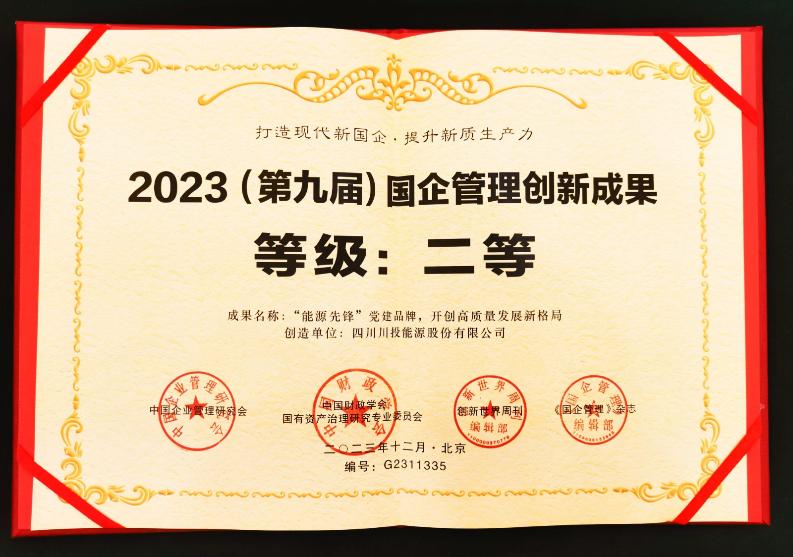 今年4月以來,為“深化對國企改革的規(guī)律性認識,加大典型宣傳推廣力度,營造改革良好環(huán)境”,中國企業(yè)管理研究會、中國財政學會國有資產(chǎn)治理研究專業(yè)委員會和《國企管理》雜志聯(lián)合發(fā)起“2023(第九屆)國企管理創(chuàng)新成果”申報評選,各級國資國企監(jiān)管部門層層發(fā)動、逐級篩選,各大中央企業(yè)、地方國企、研究機構和大專院校廣泛參與、激烈競爭,共4110余項成果(案例)參與申報評選。經(jīng)初審篩選、專家現(xiàn)場論證答辯、復核,并結合公示、投票等公眾評價結果,川投能源申報成果(案例)最終獲此殊榮。這不僅是對川投能源黨建創(chuàng)新工作的充分肯定,更是對川投能源以高質量黨建引領高質量發(fā)展成效的高度認可。