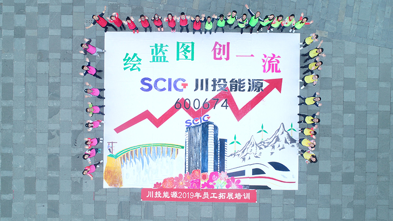 為保障素質(zhì)拓展順利開展,公司認(rèn)真組織、精心籌備,旨在加深提煉公司企業(yè)文化理念,加速新老員工溝通磨合,加強(qiáng)隊(duì)伍協(xié)作互信。培訓(xùn)過程中,全體參訓(xùn)人員被隨機(jī)分成四組,大家定隊(duì)名、呼口號、唱隊(duì)歌,一一展示團(tuán)隊(duì)風(fēng)采,個個激情滿懷、斗志昂揚(yáng)?;顒又写蠹覉F(tuán)結(jié)協(xié)作、你追我趕、奮力拼搏、難分伯仲,其中最振奮人心的項(xiàng)目是“共繪藍(lán)圖”。隊(duì)員們分別在四塊畫布上勾勒、設(shè)計(jì)、涂色,有的負(fù)責(zé)統(tǒng)籌安排,有的負(fù)責(zé)色彩調(diào)配,有的負(fù)責(zé)勾勒初描,有的負(fù)責(zé)著色上色,大伙兒熱火朝天,忙得不亦樂乎。當(dāng)我們親手繪制的四塊畫布首尾相接拼裝成整幅“藍(lán)圖”的剎那,大家不禁歡呼雀躍起來:首先躍入眼簾的是象征川投能源股票長紅的紅色箭頭,以及“川投能源”LOGO和股票代碼;畫布正上方醒目的“繪藍(lán)圖、創(chuàng)一流”標(biāo)語亮出了此次活動主題和企業(yè)愿景;畫布正中央是高高聳立的川投大廈,四周花團(tuán)錦簇,象征著各所屬公司在川投集團(tuán)領(lǐng)導(dǎo)下百花齊放、大放異彩。畫布四周還有雄偉的水電大壩,高速前行的“復(fù)興號”,象征新能源的風(fēng)力發(fā)電機(jī)組……那一刻,我們仿佛看到了川投能源創(chuàng)西部一流的愿景已躍然紙上,“千億川投”的宏偉畫卷正徐徐展開。