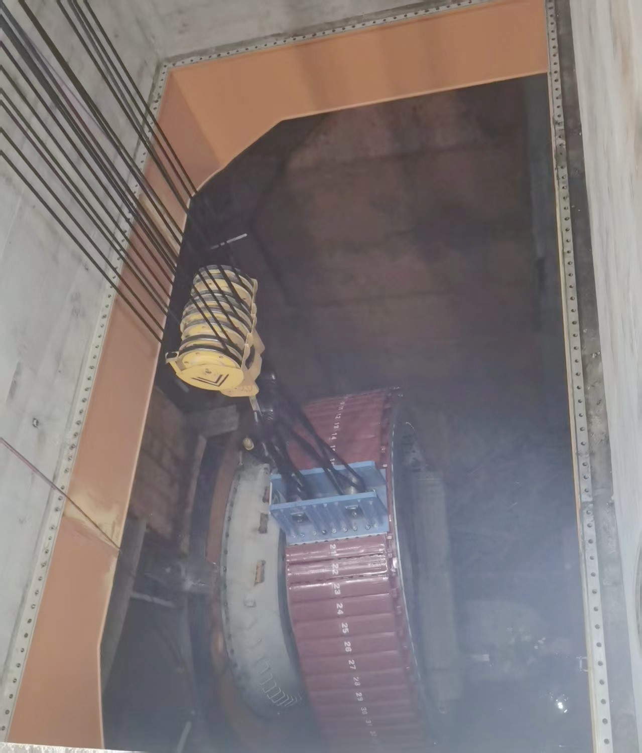 此次吊裝的6號(hào)機(jī)組轉(zhuǎn)子重量達(dá)230.5噸,直徑8.4米,是名副其實(shí)的“鋼鐵巨環(huán)”,其精準(zhǔn)就位對(duì)施工技術(shù)與安全保障提出極高要求。為確保吊裝萬無一失,所屬攀水電公司與參建各方做足了準(zhǔn)備,聯(lián)合開展多輪檢查,全面排查橋機(jī)、吊具等關(guān)鍵設(shè)備,同步組織技術(shù)交底和模擬演練,把安全措施落實(shí)到每個(gè)環(huán)節(jié)。吊裝過程中,這臺(tái)龐然大物在橋機(jī)手的精準(zhǔn)操控下平穩(wěn)起吊、緩緩移動(dòng),最終以毫米級(jí)精度穩(wěn)穩(wěn)落入機(jī)坑,與發(fā)電機(jī)大軸精準(zhǔn)對(duì)接。全程監(jiān)測(cè)數(shù)據(jù)顯示所有參數(shù)均符合設(shè)計(jì)標(biāo)準(zhǔn),本次吊裝任務(wù)圓滿完成。