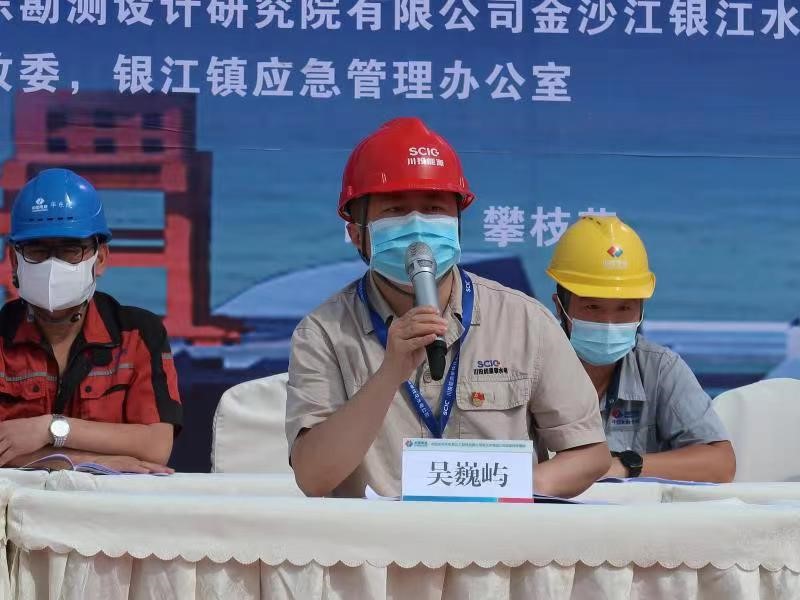 為增強全員避險意識,提高防范地質(zhì)災(zāi)害及防洪度汛應(yīng)急處置能力,強化地企協(xié)同應(yīng)急工作機制,確保銀江水電站2022年安全度汛,4月25日上午,攀水電公司在銀江水電站施工現(xiàn)場開展2022年地質(zhì)災(zāi)害及防洪度汛應(yīng)急演練,攀枝花市東區(qū)發(fā)改局、銀江鎮(zhèn)政府、沙壩村、監(jiān)理單位、施工單位相關(guān)人員參加聯(lián)動演練,公司黨總支委員、總經(jīng)理吳巍嶼,銀江鎮(zhèn)副鎮(zhèn)長楊明翰,銀江鎮(zhèn)應(yīng)急管理辦公室主任雷志江到場指導(dǎo)。