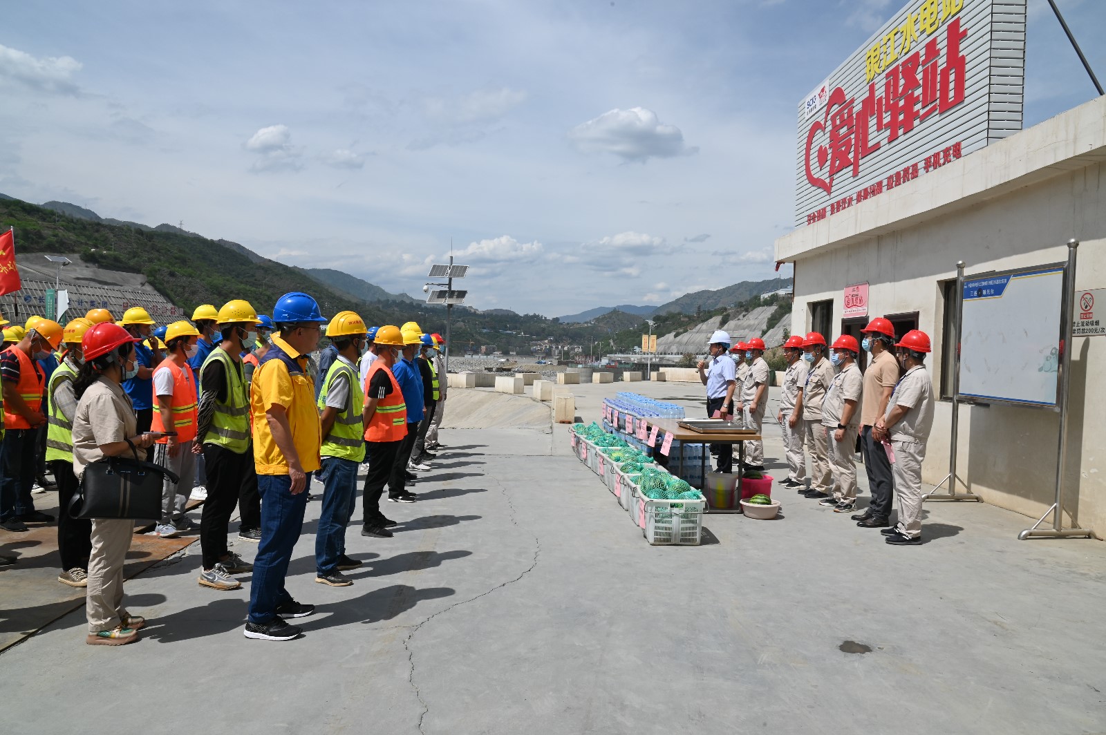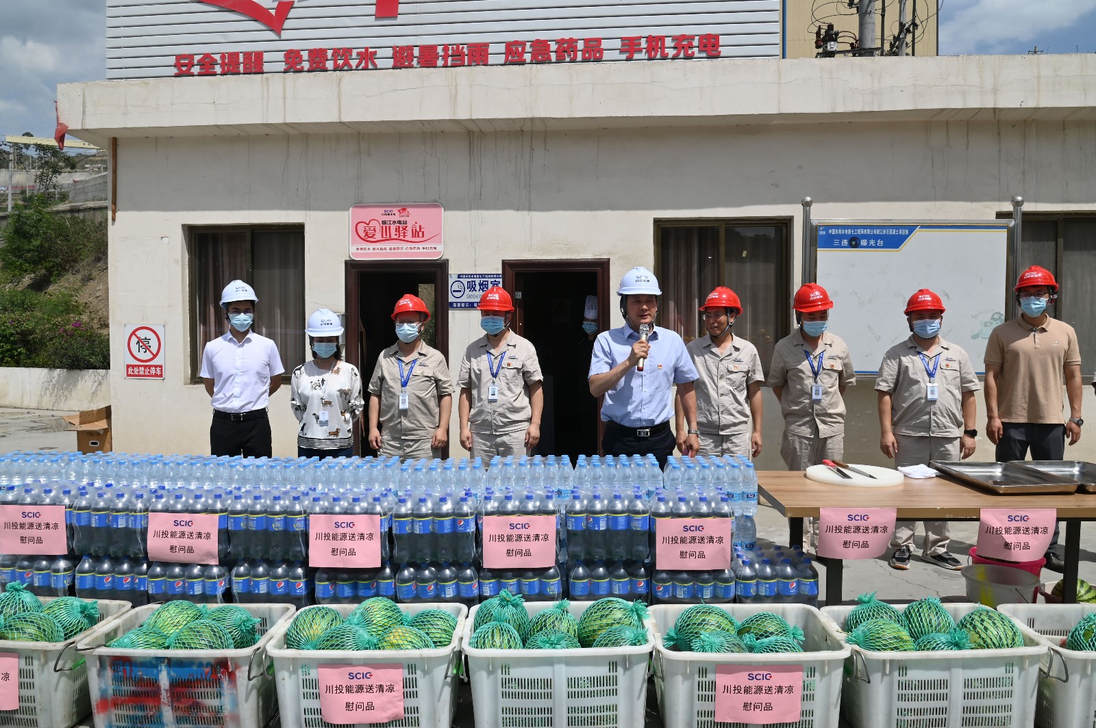 夏至剛過,高溫來襲,攀枝花已進入了高溫酷暑季節(jié)。6月22日下午,為落實全國總工會《關于做好2022年職工防暑降溫工作的通知》要求,受川投能源黨委書記、副董事長、總經(jīng)理楊洪的委托,川投能源黨委副書記、工會主席冉蘭平一行頂著烈日高溫,專程到銀江水電站工地看望慰問堅守在高溫酷暑中的一線建設者。川投能源人力資源部經(jīng)理王歆、紀檢工作部陳一鳴及攀水電公司領導、志愿者服務隊參加慰問。