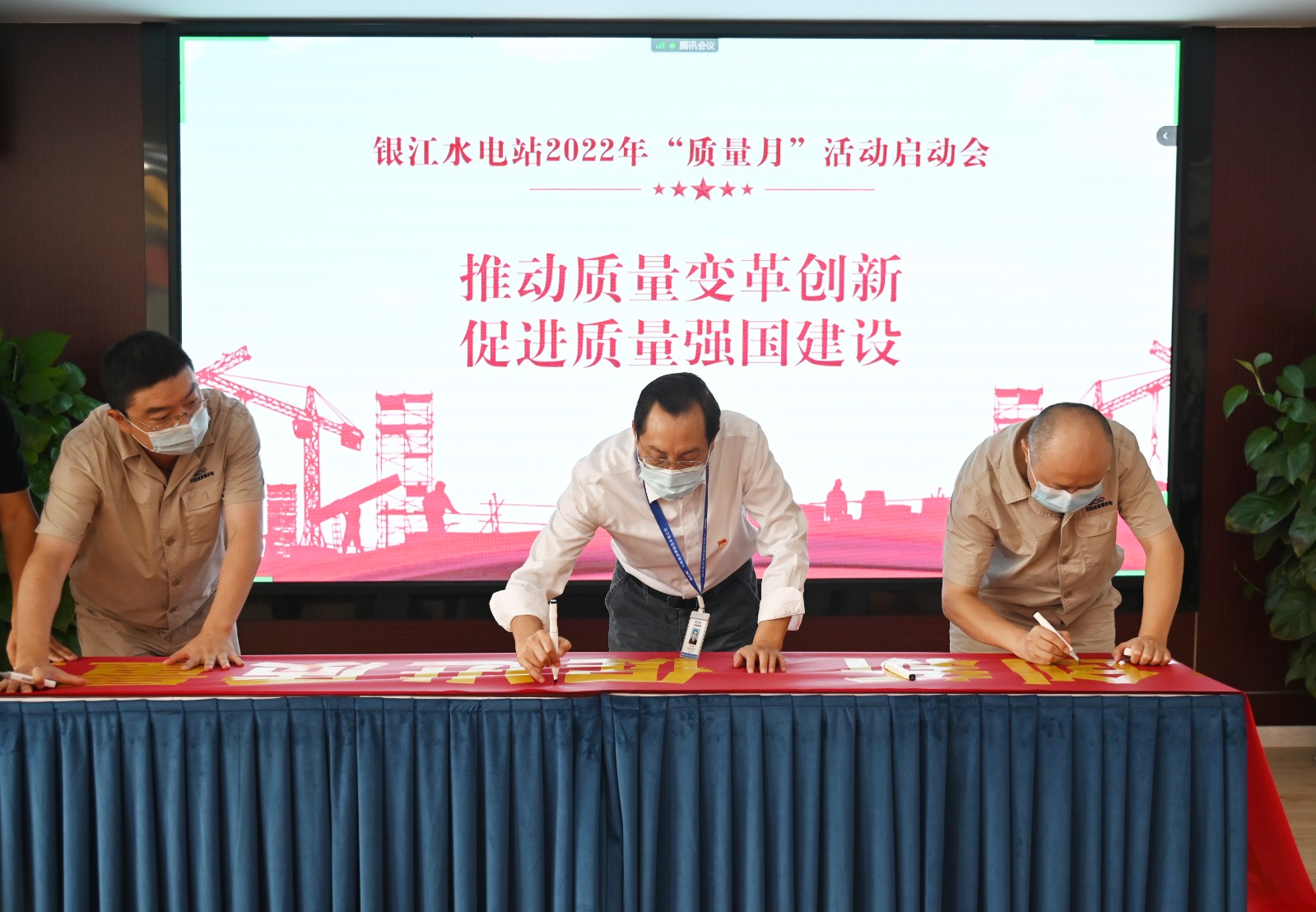 為積極響應(yīng)國家“質(zhì)量月”活動(dòng)號(hào)召,努力增強(qiáng)全員質(zhì)量責(zé)任意識(shí),9月3日,公司組織召開銀江水電站2022年“質(zhì)量月”活動(dòng)啟動(dòng)會(huì),會(huì)議由公司工程管理部經(jīng)理嚴(yán)瑞平主持。川投能源副總經(jīng)理、公司黨總支書記、董事長、質(zhì)委會(huì)主任徐孝剛,公司黨總支副書記、總經(jīng)理、質(zhì)委會(huì)主任吳巍嶼,公司副總經(jīng)理唐伽出席會(huì)議,公司工程管理部、長江設(shè)計(jì)代表處、各監(jiān)理部、各第三方質(zhì)量檢測(cè)中心、各施工單位項(xiàng)目部領(lǐng)導(dǎo)、質(zhì)量管理人員參加活動(dòng)。
