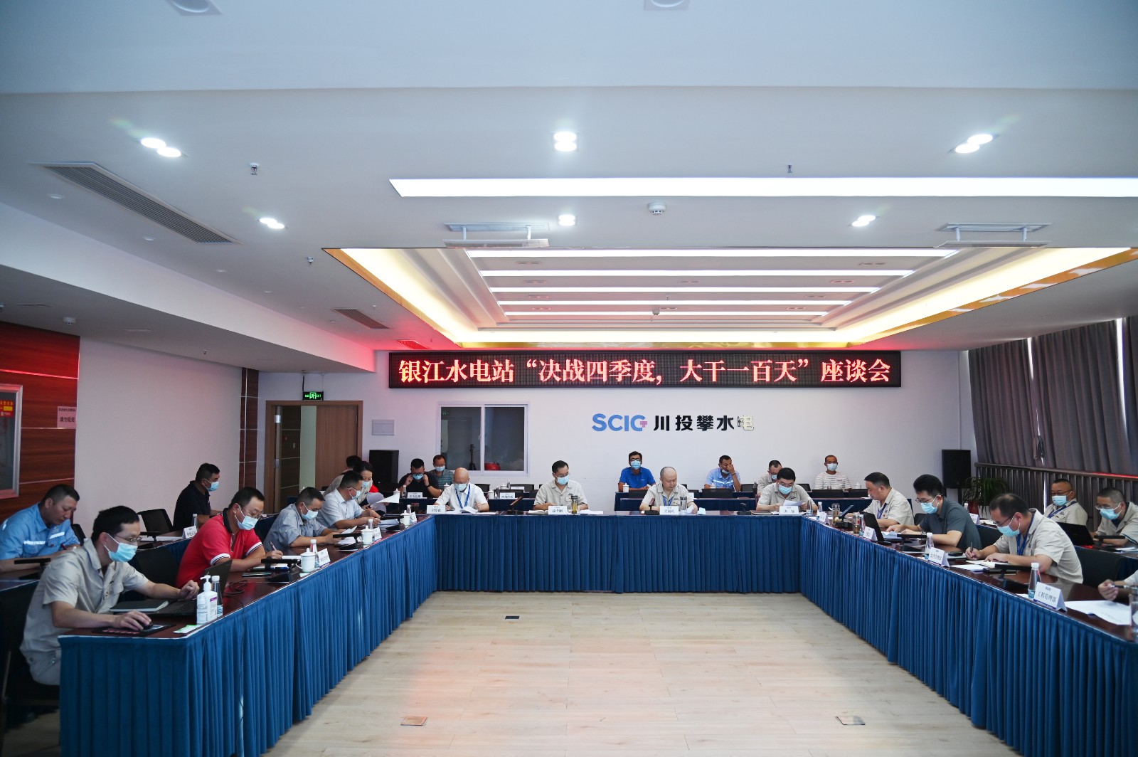 隨后,攀水電公司在公司2620會議室組織召開了銀江水電站“決戰(zhàn)四季度、大干一百天,力爭提前完成基坑開挖,加快主體工程施工,獻(xiàn)禮二十大”座談會,會議由攀水電公司黨總支副書記、總經(jīng)理吳巍嶼主持,公司領(lǐng)導(dǎo)班子成員、各部門負(fù)責(zé)人及各參建單位主要負(fù)責(zé)人共計(jì)30余人參加了會議。
