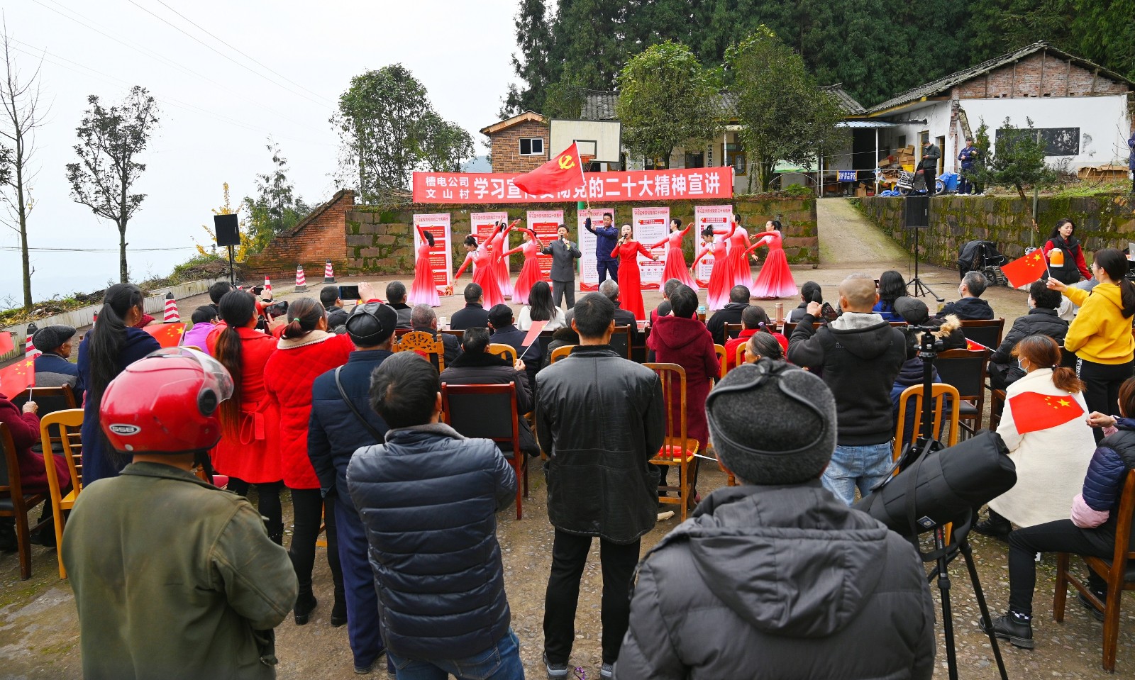 為深入學(xué)習(xí)宣傳貫徹黨的二十大精神,槽漁灘公司于近日組織文藝?yán)碚撔v隊到鄉(xiāng)村振興聯(lián)系村,槽漁灘鎮(zhèn)文山村開展黨的二十大精神文藝宣講活動,為當(dāng)?shù)亟傥淮迕袼蜕狭艘粓鼍实男v演出,把黨的二十大精神在鄉(xiāng)村、在田間廣為傳播。