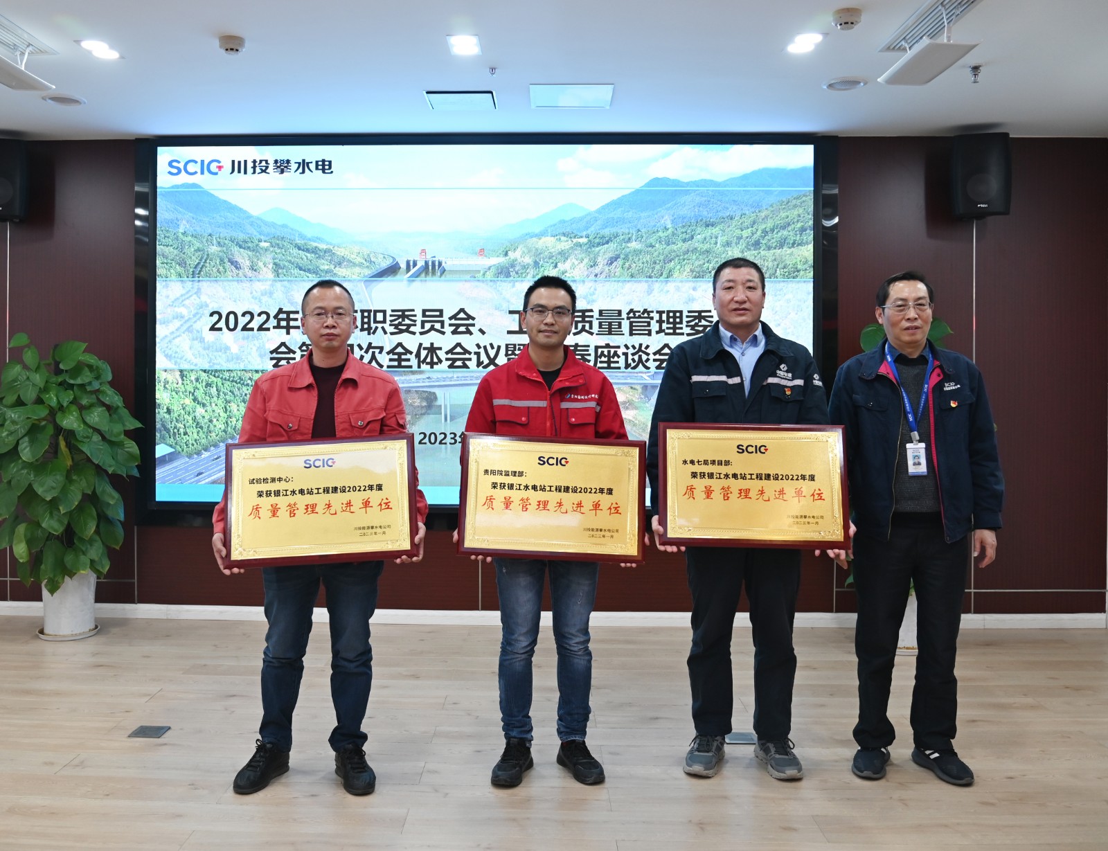 會上,公司黨總支副書記、董事會秘書、工會主席鄧勇宣讀了《關(guān)于表彰銀江水電站2022年度質(zhì)量管理先進(jìn)單位、先進(jìn)集體和先進(jìn)個人的通報(bào)》文件,徐孝剛向榮獲2022年度質(zhì)量管理先進(jìn)單位的試驗(yàn)檢測中心、貴陽院監(jiān)理部、水電七局項(xiàng)目部頒發(fā)了獎牌,公司總經(jīng)理助理兼工程管理部經(jīng)理嚴(yán)瑞平向先進(jìn)集體代表頒發(fā)了獎牌。吳巍嶼組織參會人員向獲獎的單位、集體及個人表示了祝賀,要求其在今后的質(zhì)量管理工作中發(fā)揮好先鋒模范帶頭作用,促進(jìn)各參建單位共同提高質(zhì)量管理水平,把銀江水電站建設(shè)成“精品工程、樣板工程、陽光工程”。