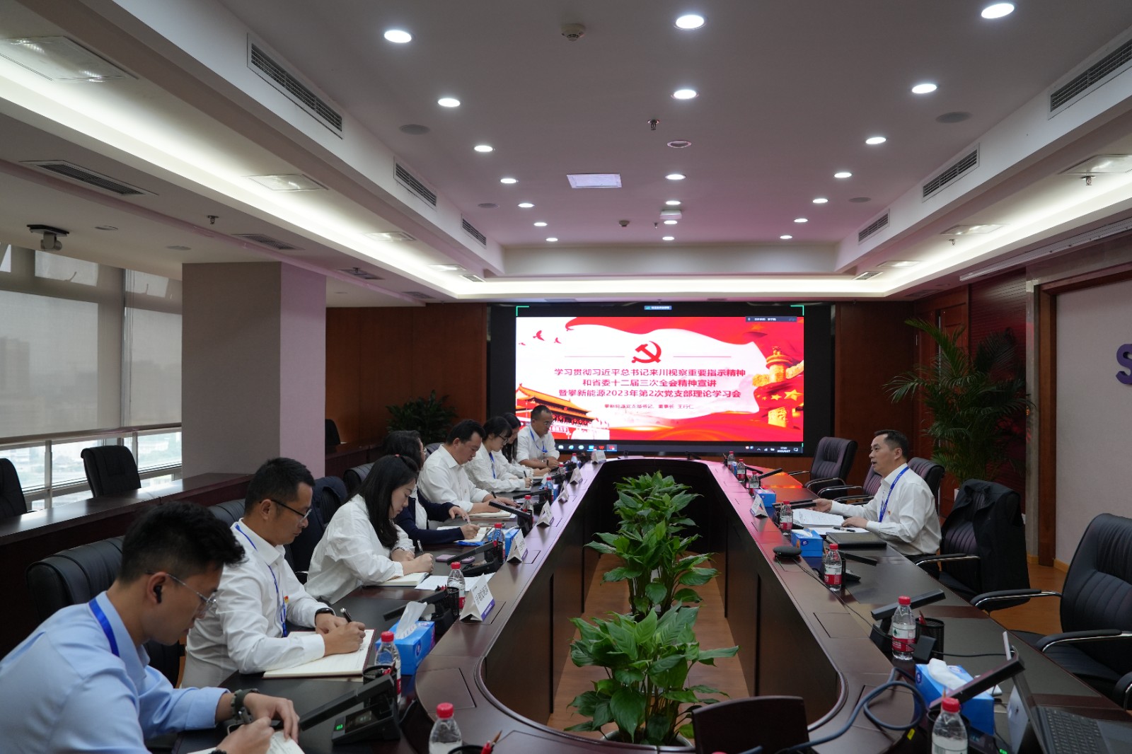 攀新能源領(lǐng)導(dǎo)班子成員及全體員工參加專題宣講,公司全體黨員參加黨支部理論學(xué)習(xí)會。