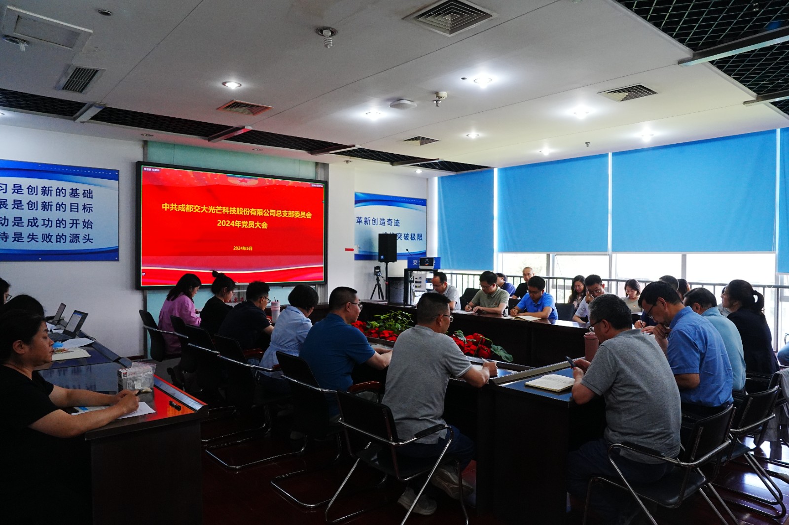 上一屆交大光芒黨總支委員會任期屆滿,為深入落實全面從嚴治黨要求,持續(xù)增強基層黨組織戰(zhàn)斗堡壘作用,根據《中國共產黨章程》《中國共產黨基層組織選舉工作條例》和川投能源黨委要求,交大光芒黨總支于2024年5月30日下午召開黨員大會進行換屆選舉,上一屆黨總支書記劉成輝主持會議并上黨課。