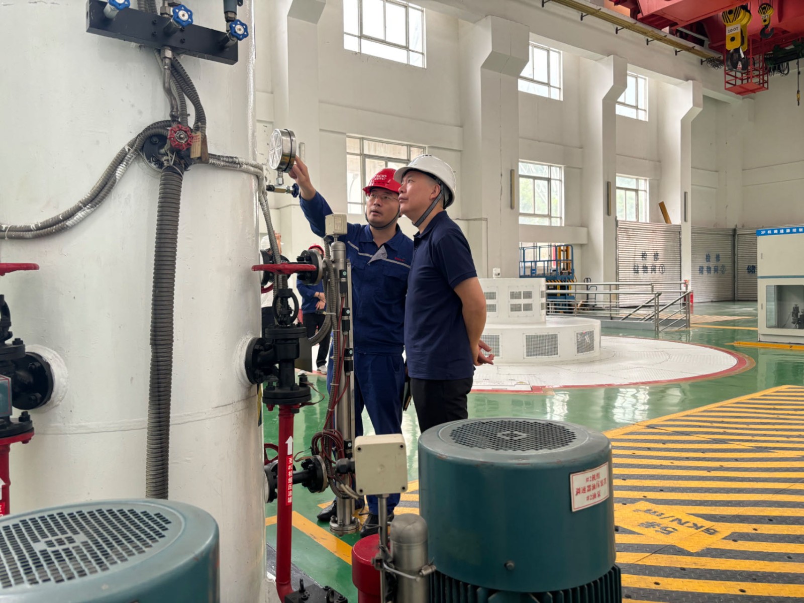 檢查組一行先到生產(chǎn)一線對主廠房設(shè)備設(shè)施、大壩水庫調(diào)度、生態(tài)流量下泄、應(yīng)急物資儲備、中控室生產(chǎn)運行情況進行了重點查看,檢查中,腳基坪電廠廠長趙兵對應(yīng)急物資儲備情況、防汛應(yīng)急預(yù)案、汛期值班值守、地質(zhì)災(zāi)害風(fēng)險辨識和防范措施等情況進行了匯報,陶世賢對腳基坪電廠在防汛減災(zāi)各項工作落實情況給予了充分的肯定。