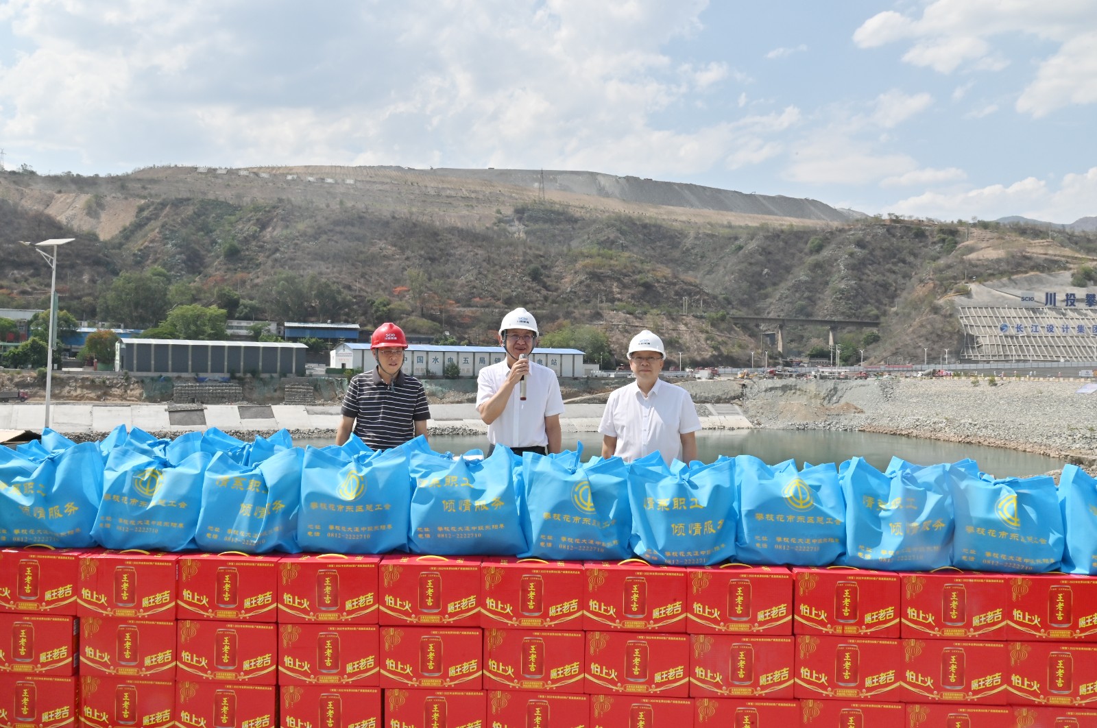 6月的攀枝花酷暑難耐,炎炎烈日給銀江水電站一線工人帶來了極大的挑戰(zhàn),為切實關(guān)心關(guān)愛一線職工,給大家加油鼓勁,送去絲絲涼意,6月4日下午,攀枝花市東區(qū)區(qū)委書記凌永航,東區(qū)區(qū)委常委、統(tǒng)戰(zhàn)部部長、區(qū)總工會主席郭江一行,赴銀江水電站工地開展夏日送清涼慰問活動,川投能源副總經(jīng)理、攀水電公司黨總支書記、董事長徐孝剛等陪同慰問。長江設(shè)計公司、貴陽院監(jiān)理部、華東院監(jiān)理部、水電五局項目部、水電七局項目部、廣東源天項目部等21家參建單位共計60余人接受慰問。