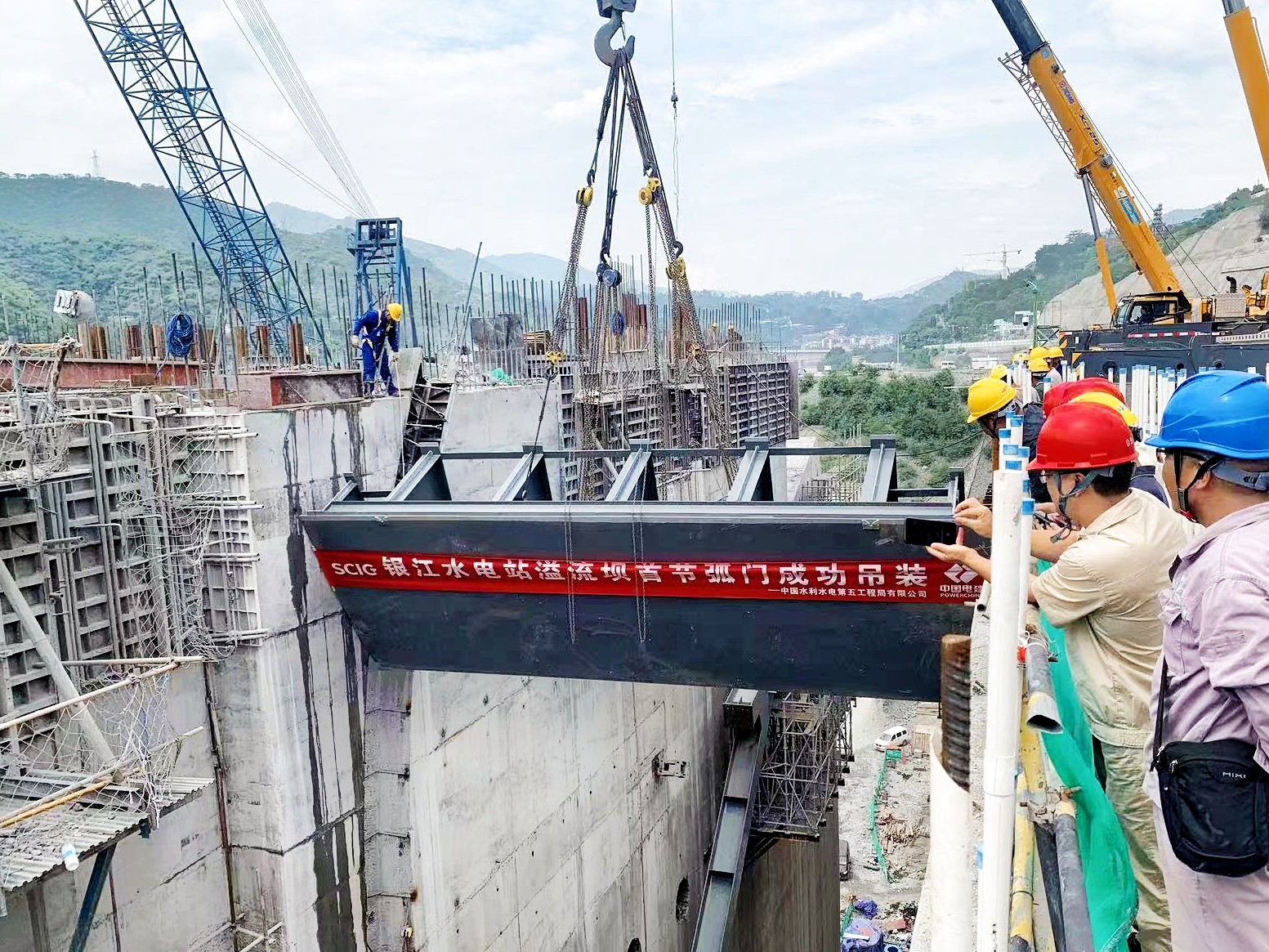 7月22日,正值銀江水電站開工建設(shè)五周年紀(jì)念日之際,工程建設(shè)再傳捷報,首節(jié)弧形工作門吊裝成功,標(biāo)志著銀江水電站閘門安裝高峰期正式拉開序幕。