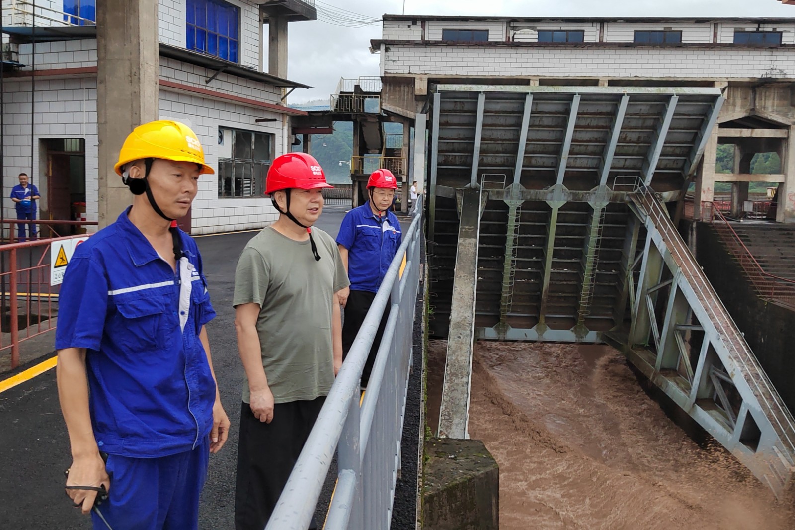槽漁灘公司黨委書記、董事長(zhǎng)何光富,副總經(jīng)理蔣玉兵帶領(lǐng)相關(guān)部門負(fù)責(zé)人趕赴電廠,對(duì)電廠的設(shè)備設(shè)施和防洪工作進(jìn)行檢查,現(xiàn)場(chǎng)聽(tīng)取電廠負(fù)責(zé)人關(guān)于防汛工作的安排、部署及落實(shí)情況匯報(bào)。到庫(kù)區(qū)對(duì)竹菁?jí)?、董河河堤進(jìn)行認(rèn)真檢查,詳細(xì)了解水庫(kù)區(qū)域?qū)嵡椤?