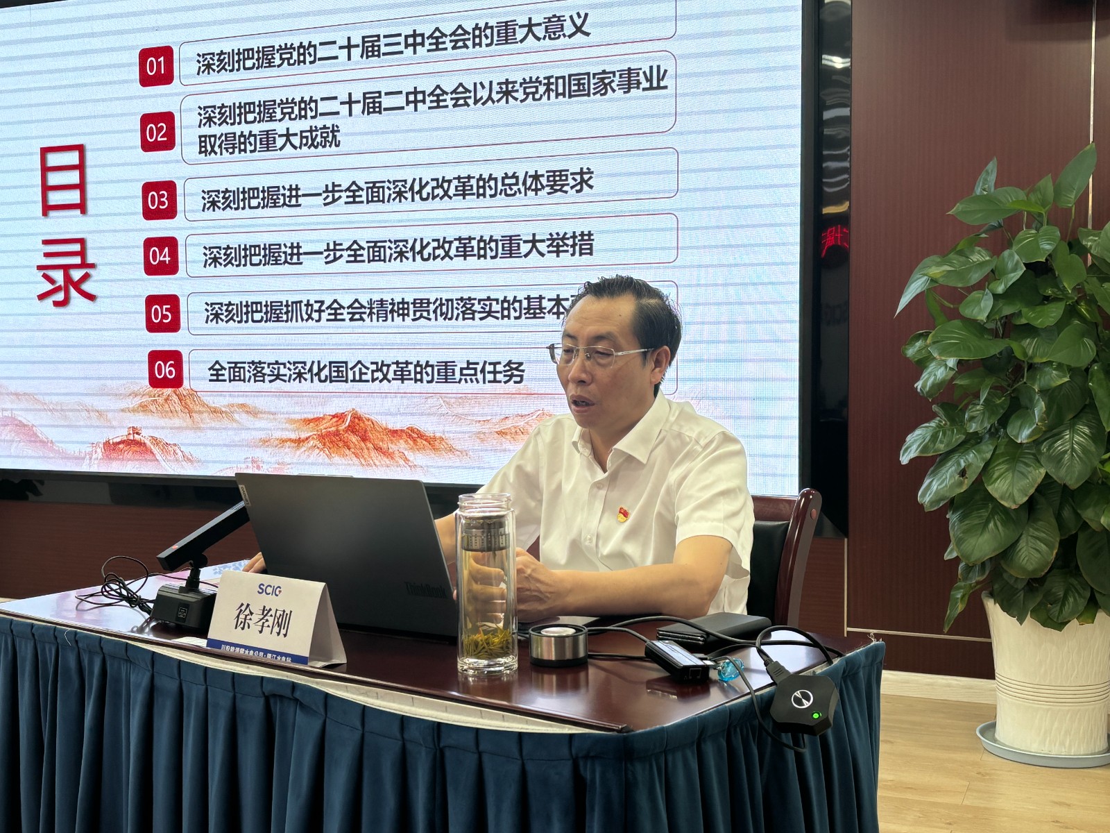 會(huì)議首先由徐孝剛宣講黨的二十屆三中全會(huì)精神,圍繞深刻把握黨的二十屆三中全會(huì)的重大意義和進(jìn)一步全面深化改革的總體要求、重大舉措、重點(diǎn)任務(wù)等方面進(jìn)行系統(tǒng)闡述和深入解讀,并提出攀水電公司貫徹落實(shí)全會(huì)精神的工作要求。徐孝剛強(qiáng)調(diào),全體黨員同志務(wù)必以全會(huì)精神為指引,充分發(fā)揮黨員先鋒模范作用,站在更高的政治高度,肩負(fù)起更強(qiáng)的責(zé)任,切實(shí)把全會(huì)精神轉(zhuǎn)化為推動(dòng)工程建設(shè)的強(qiáng)勁動(dòng)力與實(shí)際作為,向著工程蓄水發(fā)電目標(biāo)全力沖刺。
