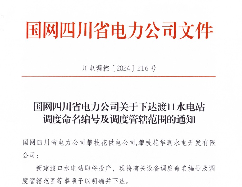 銀江水電站投產(chǎn)發(fā)電在即,因“銀江”二字已被銀江變電站占用,攀水電公司動員全體員工集思廣益,挑選符合規(guī)定又有寓意的調(diào)度名。10月8日,在國網(wǎng)四川省電力公司和川投能源的指導(dǎo)幫助下,經(jīng)過積極對接、多方協(xié)調(diào),攀水電公司成功取得國網(wǎng)四川省電力公司對銀江水電站和送出線路的調(diào)度命名,銀江水電站的調(diào)度名為“渡口水電站”,銀江水電站220kV送出線路調(diào)度名為“220kV渡銀線”。