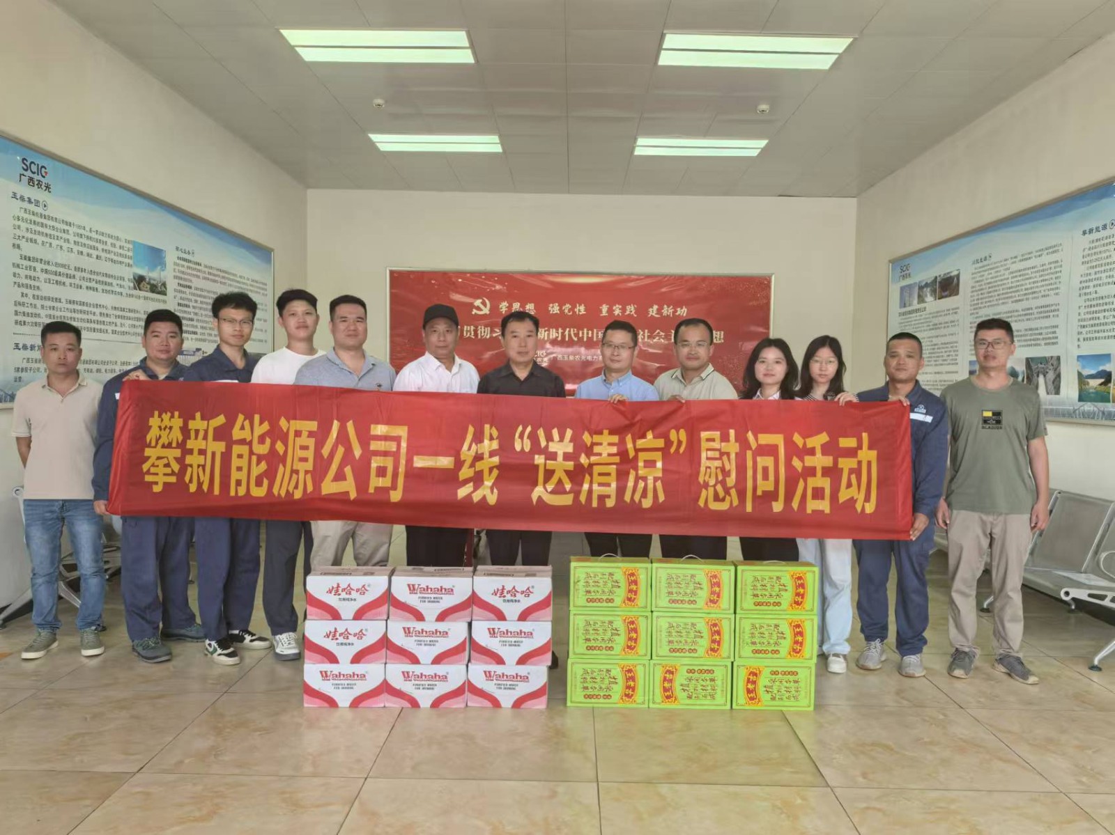 炎夏送清涼,溫情暖人心。攀新能源公司為進(jìn)一步做好防暑降溫工作,深切關(guān)懷在項(xiàng)目現(xiàn)場(chǎng)作業(yè)的一線(xiàn)職工職業(yè)健康,確?,F(xiàn)場(chǎng)安全生產(chǎn),組織開(kāi)展了“送清涼”一線(xiàn)慰問(wèn)活動(dòng)。攀新能源公司黨支部委員、總經(jīng)理周軍帶隊(duì)“送清涼”慰問(wèn)小組,依次前往廣西農(nóng)光公司、桂平光伏電站、廣西融安公司光伏發(fā)電站項(xiàng)目現(xiàn)場(chǎng),為辛勤工作的勞動(dòng)者們送去清涼與關(guān)懷。