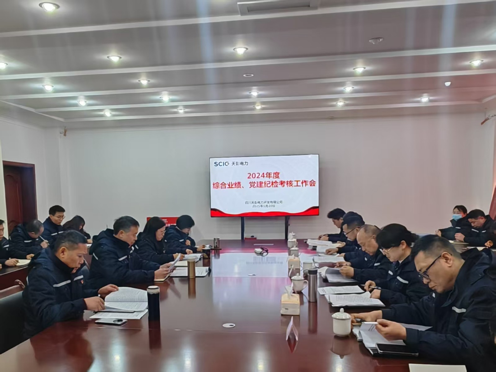 根據(jù)川投電力考核工作統(tǒng)一安排,近日,川投電力黨委副書記、總經(jīng)理、考核組組長蔡承德率隊(duì)赴天彭電力開展2024年度綜合業(yè)績、黨建紀(jì)檢工作考核。川投電力黨委委員、紀(jì)委書記謝麗主持會議,川投電力考核組成員,天彭電力領(lǐng)導(dǎo)班子成員、中層干部及員工代表參加會議。