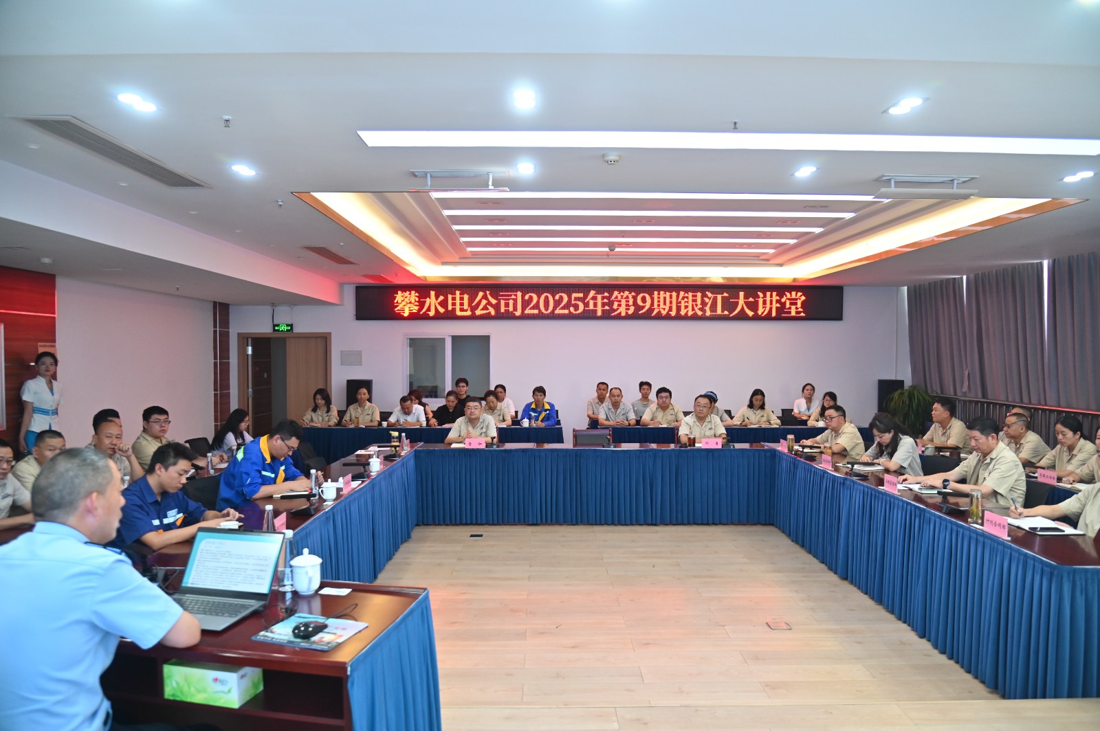 為進一步增強員工道路交通安全意識,筑牢日常出行安全防線。9月18日,公司組織開展了2025年第9期銀江大講堂,邀請到攀枝花市交警支隊三大隊副大隊長任幫華,專題講授道路交通安全。任幫華從事公安交通管理工作27年,經驗豐富、業(yè)務精湛,榮立二等功、三等功、多次榮獲全市道路交通管理先進個人,曾參加成都大運會交通安保工作。公司領導、員工及參建單位代表共計40余人參與。