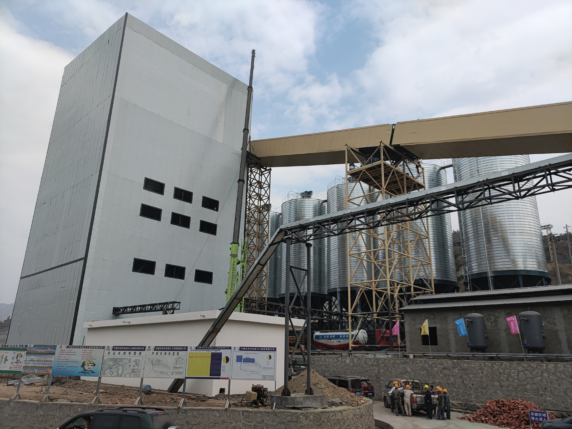 銀江水電站砂石加工、混凝土生產(chǎn)及施工供水系統(tǒng)由水電七局負(fù)責(zé)施工,于2020年10月10日開工,從開始準(zhǔn)備到完成系統(tǒng)建設(shè)時間僅141天,較具有類似產(chǎn)能的砂石加工及混凝土生產(chǎn)系統(tǒng)普遍需要6至8個月的建安工期相比,工期極為緊張。為確保三大系統(tǒng)按期投產(chǎn),公司及各參建單位團(tuán)結(jié)一心、攻堅克難,共同為三大系統(tǒng)的建設(shè)安裝和運行投產(chǎn)做出了不懈努力。一是強化施工組織,不斷增加資源投入,加班加點搶進(jìn)度,今年春節(jié)期間全體員工堅守工地,實現(xiàn)了春節(jié)期間未停工的大干熱潮。二是強化過程管控,攀水電公司安排工程管理部2 名同志具體負(fù)責(zé),每日到現(xiàn)場檢查落實施工任務(wù)并組織監(jiān)理和施工單位召開日碰頭會,協(xié)調(diào)解決存在的問題。三是強化溝通協(xié)調(diào),為確保砂石骨料原材料滿足調(diào)試和試運行需要,由公司分管領(lǐng)導(dǎo)帶隊,每日到攀鋼拓為公司協(xié)調(diào),積極克服地方群眾阻工等不利影響,為系統(tǒng)投運做好了物資保障。