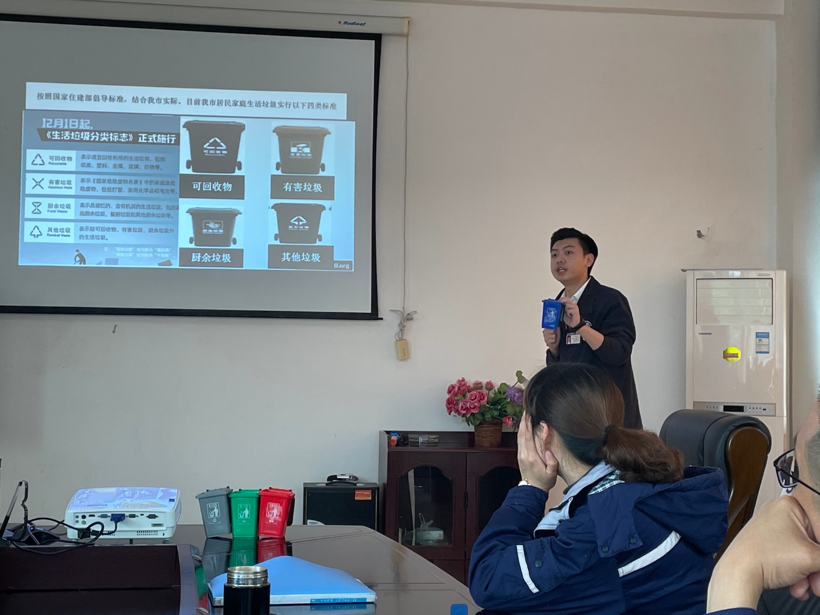 此次職工培訓(xùn)特邀人人安康公益服務(wù)中心宣教科的老師主講,普及了健康環(huán)保理論知識和環(huán)保法律法規(guī),四川省生活垃圾分類的管理辦法、單位個人如何正確進行垃圾分類以及環(huán)境污染與健康飲食飲水知識等相關(guān)內(nèi)容。針對電站員工關(guān)于部分生活垃圾如何分類的困惑,老師結(jié)合生活實際,給大家一一作了講解。