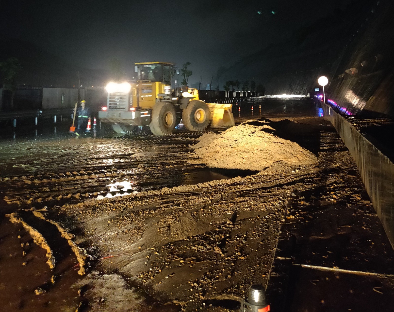7月5日17時40分,攀枝花市地災(zāi)辦、防汛辦、氣象臺聯(lián)合發(fā)布山洪和地質(zhì)災(zāi)害預(yù)警信息,公司安全環(huán)保部第一時間傳達(dá)預(yù)警信息,當(dāng)晚公司防汛值班領(lǐng)導(dǎo)川投能源副總經(jīng)理、攀水電公司黨總支書記、董事長徐孝剛帶領(lǐng)值班人員從8時到11時進(jìn)行防汛值班檢查,對各值班點,重要部位巡視,當(dāng)晚21時45分,22時15分攀枝花氣象臺分別發(fā)布雷電黃色預(yù)警、暴雨黃色預(yù)警。攀水電公司組織各參建單位按照防洪度汛工作要求,冒雨開展雨中巡查,對渣場、導(dǎo)流明渠,銀江大橋、砂石拌和系統(tǒng)等重要部位及施工區(qū)域進(jìn)行全面排查。當(dāng)晚23點左右,值班人員雨中巡查,發(fā)現(xiàn)暴雨導(dǎo)致轉(zhuǎn)沱溝邊坡上方工業(yè)園區(qū)內(nèi)部分棄渣被沖刷到G227國道,嚴(yán)重影響道路的正常通行,本著國企社會責(zé)任,公司防汛防災(zāi)帶班領(lǐng)導(dǎo)徐孝剛立即安排二灘監(jiān)理、葛洲壩路橋組織機械設(shè)備及人員進(jìn)行清理,于次日凌晨3點左右清理完畢,確保了G227國道的正常通行。