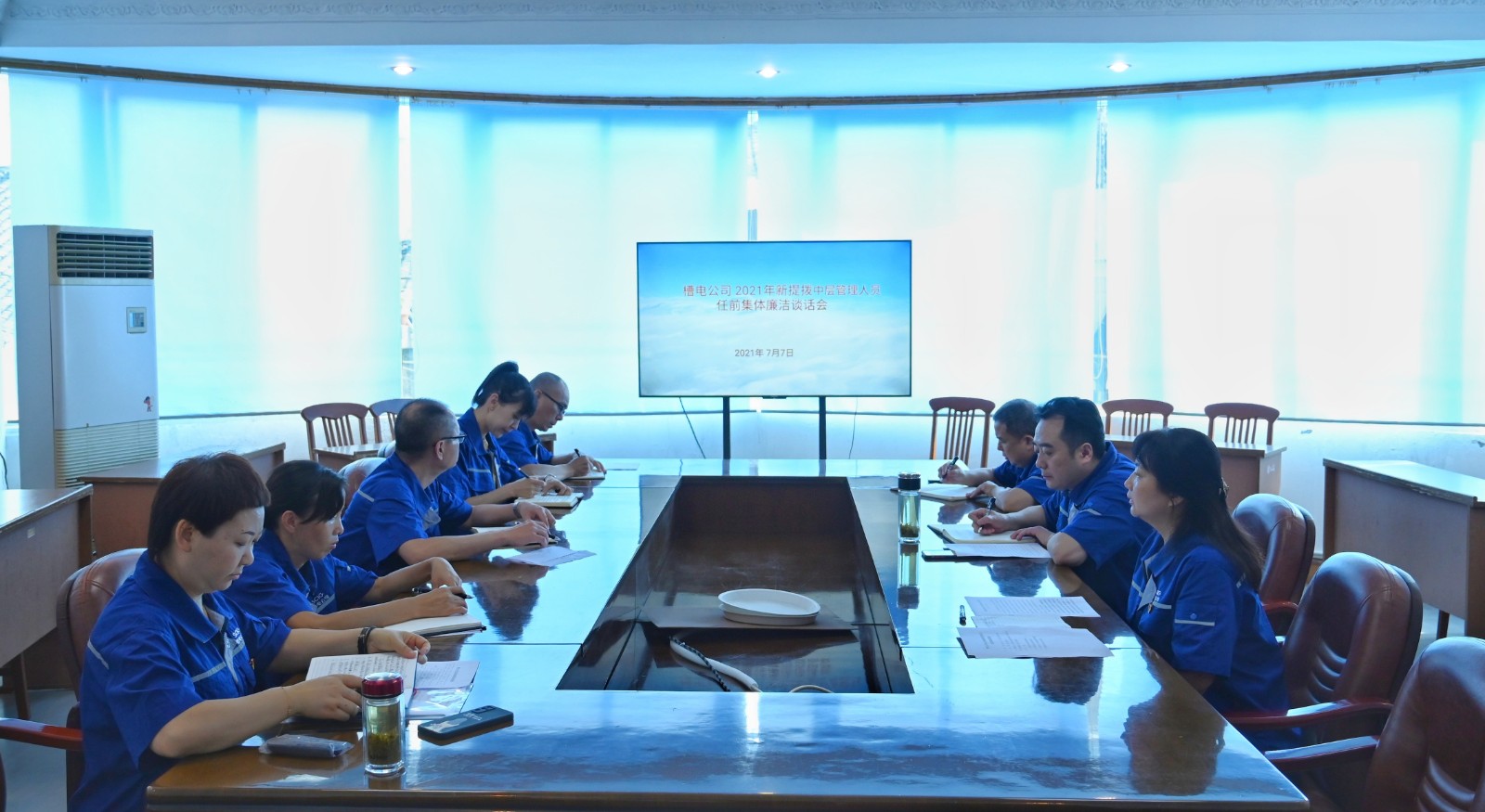 7月7日,槽漁灘公司召開新提拔中層管理人員任前集體廉潔談話會。公司黨委書記、董事長楊濤、公司總經(jīng)理何光富、公司紀委書記謝愛東對2021年競聘上崗的5位部門正、副職管理人員進行了任前廉潔談話。