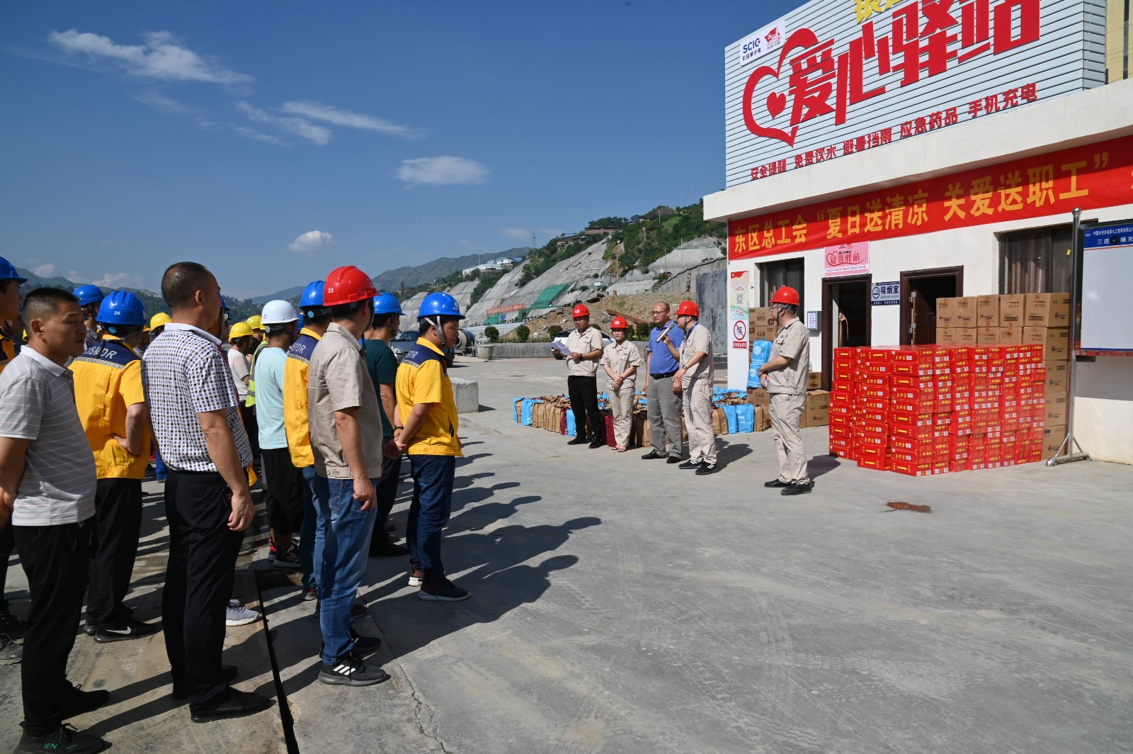 7月以來,攀枝花氣溫持續(xù)升高,為了保證一線職工在高溫環(huán)境下安全、清涼工作,近日攀枝花市東區(qū)總工會(huì)黨組書記、常務(wù)副主席劉貴平一行來到川投能源銀江水電站施工現(xiàn)場愛心驛站,為一線建設(shè)者們送來了300余份清涼解暑飲品和防暑降溫用品,慰問奮戰(zhàn)在高溫一線的作業(yè)人員和管理人員。