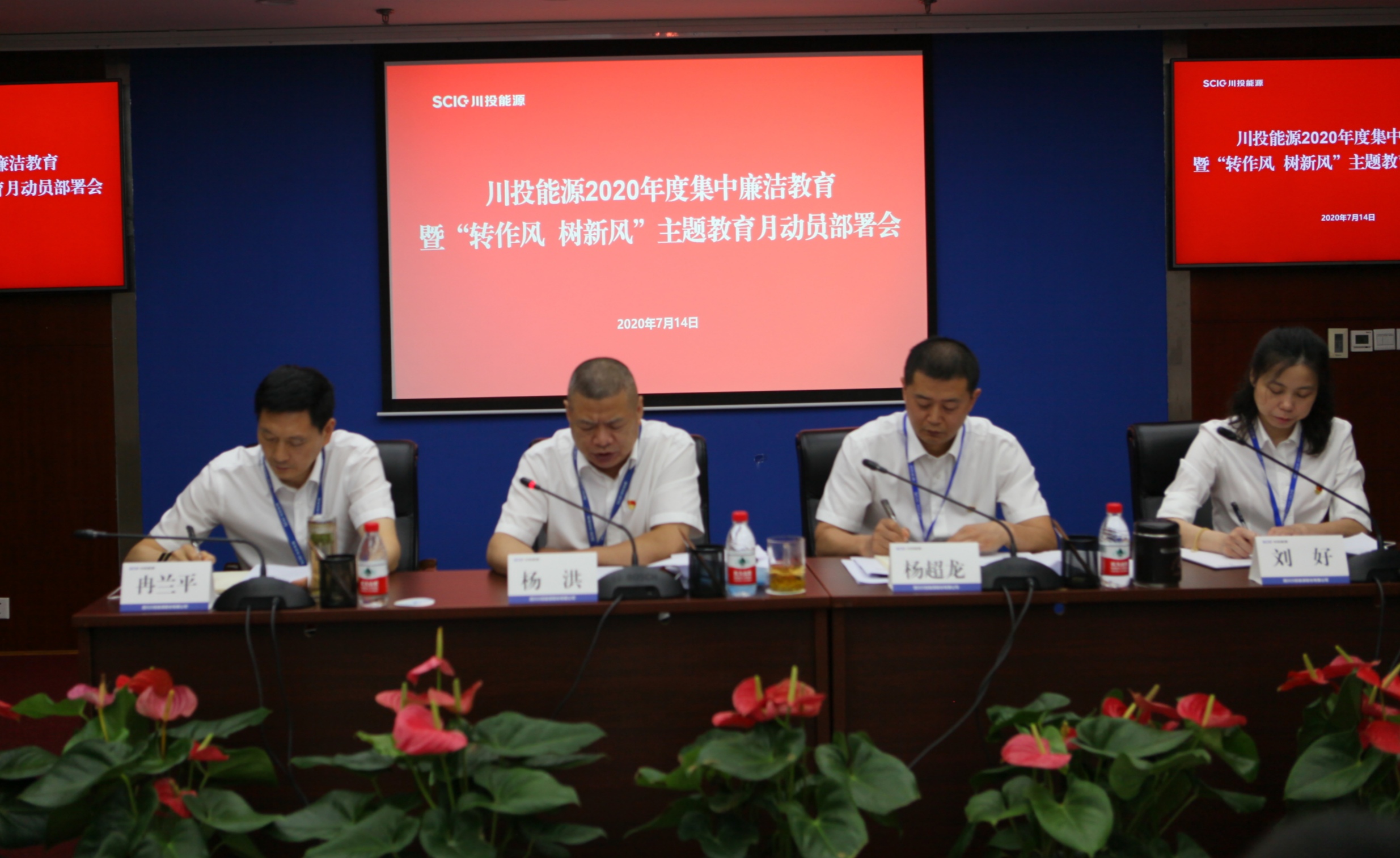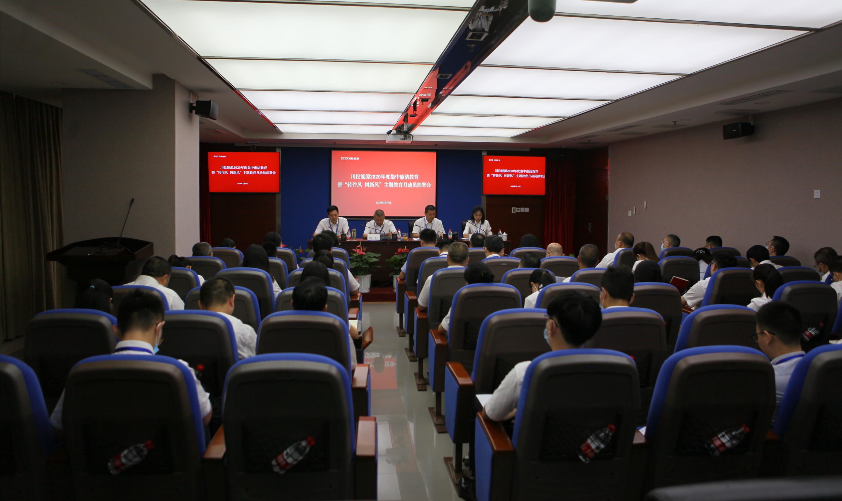 7月14日,川投能源黨委組織召開了2020年度集中廉潔教育暨“轉(zhuǎn)作風(fēng)、樹新風(fēng)”主題教育月動(dòng)員部署會(huì)。公司黨委書記、副董事長、總經(jīng)理?xiàng)詈槌鱿瘯?huì)議并講話,公司黨委副書記、工會(huì)主席楊超龍主持會(huì)議。