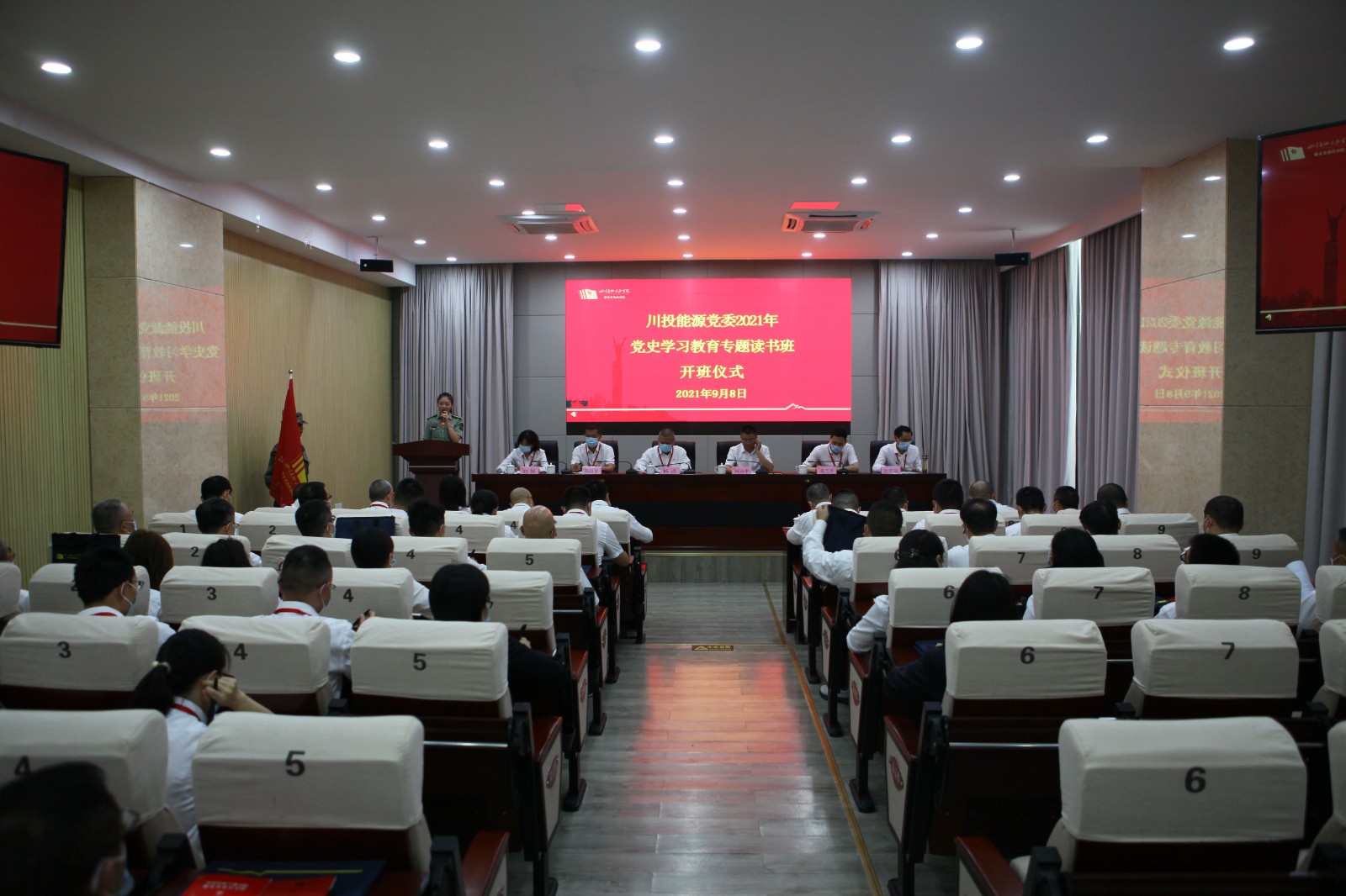 為期三天的學習中,授旗儀式、入學宣誓、學習習近平總書記七一講話、專題黨課和音像教學每一個環(huán)節(jié)都引人入勝?!都t軍長征在四川》專題黨課,不僅生動有趣還系統(tǒng)地闡述了紅軍長征為什么來到四川、在四川做了什么以及在四川停留的意義和價值。川投能源黨委副書記、工會主席楊超龍傳達了《學習貫徹習近平總書記在慶祝中國共產(chǎn)黨成立100周年大會上重要講話精神宣講提綱》,以習近平重要講話精神為基底,圍繞新思想、新觀點和新要求等方面,深入闡述了習近平總書記重要講話精神的含義和深遠意義,在場學員對“七一”重要講話精神有了更深的體會感悟,更加深刻地領悟了共產(chǎn)黨人的初心和使命,感悟到了偉大的長征精神,也更加體會到今天和平來之不易的。