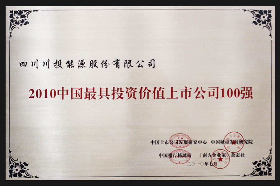 近年來,川投能源備受資本市場(chǎng)和社會(huì)各界青睞,連續(xù)入選滬深300指數(shù)樣本股、中證800指數(shù)樣本股、上證380指數(shù)樣本股、MSCI新興市場(chǎng)指數(shù)、MSCI ACWI全球指數(shù),同時(shí)作為首批中國A股股票納入富時(shí)全球股票指數(shù)系列和標(biāo)普新興市場(chǎng)全球基準(zhǔn)指數(shù);先后獲得“中國證券市場(chǎng)年會(huì)金鳳凰獎(jiǎng)”、“中國上市公司市值管理百家優(yōu)秀公司”、“最守誠信上市公司”、“最具投資價(jià)值上市公司”、《上海證券報(bào)》“公司治理資本創(chuàng)新公司獎(jiǎng)”等榮譽(yù);獲得中華全國總工會(huì)授予的“抗震救災(zāi)恢復(fù)重建工人先鋒號(hào)”、“全國汶川地震災(zāi)后恢復(fù)重建先進(jìn)集體”;1998—2011年連續(xù)13年獲得“四川省重合同守信用先進(jìn)單位”稱號(hào);2011年8月,榮獲“全國模范勞動(dòng)關(guān)系和諧企業(yè)”稱號(hào);2011年11月,在《每日經(jīng)濟(jì)新聞報(bào)》聯(lián)合多家媒體和116家機(jī)構(gòu)評(píng)委傾力打造的全國上市公司“口碑榜”評(píng)選中,被代表市場(chǎng)2萬億元資金的廣大投資者評(píng)選為“最具成長(zhǎng)潛力上市公司”;2011年12月,榮獲上海證券交易所評(píng)選的中國公司治理最高榮譽(yù)——“2011年度董事會(huì)獎(jiǎng)提名獎(jiǎng)”、“2011年度典型并購重組案例獎(jiǎng)提名獎(jiǎng)”;2012年9月,川投能源黨委榮獲“全省創(chuàng)先爭(zhēng)優(yōu)先進(jìn)基層黨組織”稱號(hào); 2015年公司還獲得了由中國上市公司協(xié)會(huì)、中國證券投資者保護(hù)基金公司、上海證券交易所、深圳證券交易所、中國證券業(yè)協(xié)會(huì)、中國證券投資基金業(yè)協(xié)會(huì)聯(lián)合頒發(fā)的“2015中國最受投資者尊重的上市公司”入圍獎(jiǎng)。2022年6月,入選中國上市公司協(xié)會(huì)“2021年度A股上市公司現(xiàn)金分紅榜單豐厚回報(bào)榜”;2023年11月獲得中國證券報(bào)頒發(fā)的“第二十五屆上市公司金牛獎(jiǎng)·2022年度金信披獎(jiǎng)”;2024年10月被證券時(shí)報(bào)評(píng)選為“主板上市公司價(jià)值100強(qiáng)”。主體信用等級(jí)長(zhǎng)期維持AAA,以優(yōu)良的業(yè)績(jī)持續(xù)回報(bào)投資人,受到國內(nèi)國際兩個(gè)市場(chǎng)的高度關(guān)注和價(jià)值認(rèn)可。