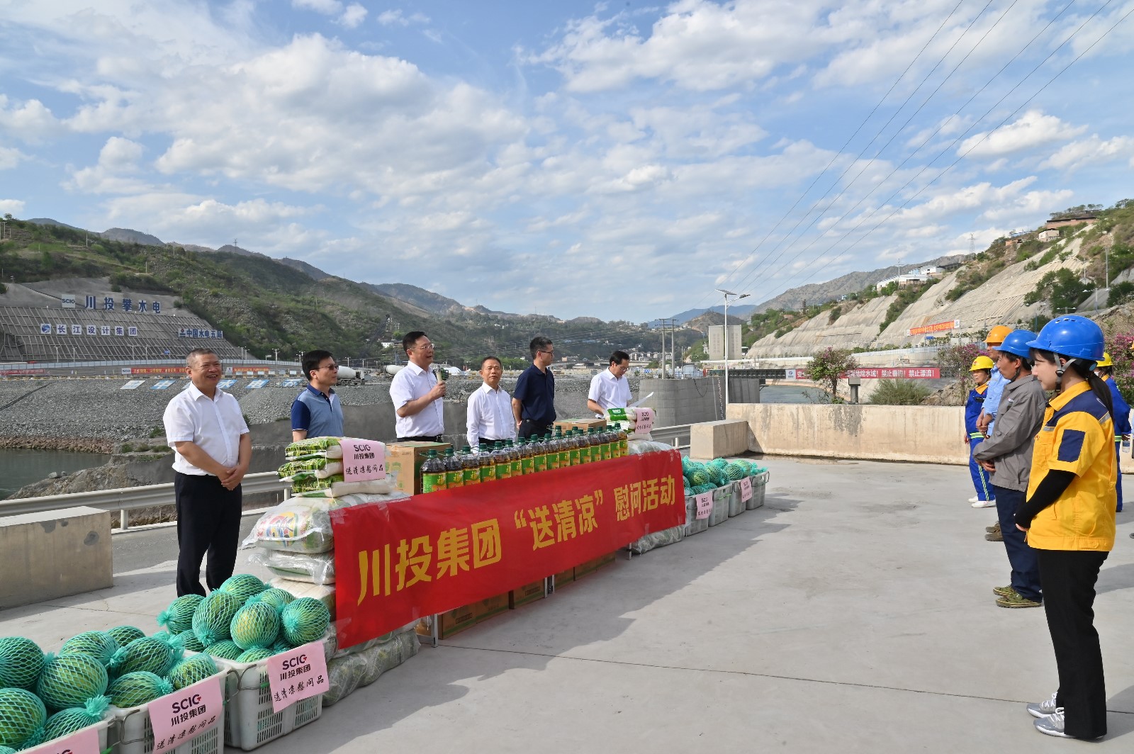 督導(dǎo)檢查組深入康家溝渣場、大壩基坑施工現(xiàn)場,重點(diǎn)檢查了攀水電公司“迎大運(yùn)?保安全”集中整治、重大事故隱患專項(xiàng)排查整治、安全生產(chǎn)責(zé)任落實(shí)以及風(fēng)險辨識管控情況,并代表集團(tuán)公司慰問了攀水電公司及電站參建單位一線員工,為大家送上防暑降溫物資。