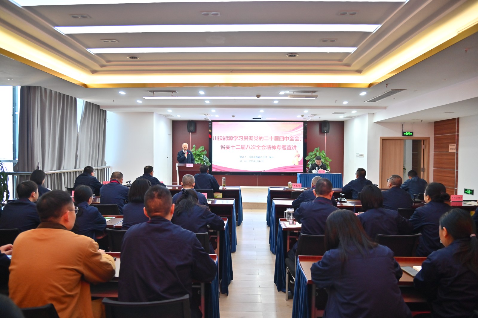 為深入學習貫徹黨的二十屆四中全會精神、省委十二屆八次全會精神,推動全會精神在基層一線落地生根,12月4日上午,川投能源副總經(jīng)理陶然赴攀水電公司宣講黨的二十屆四中全會、省委十二屆八次全會精神,攀水電公司領(lǐng)導及職工共計35人參加。