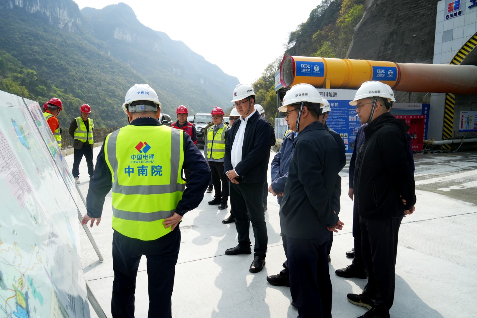 3月31日至4月1日,四川能源發(fā)展集團(tuán)總經(jīng)理助理、川投能源黨委書記、董事長(zhǎng)劉勝金帶隊(duì),赴湖北遠(yuǎn)安抽水蓄能電站開展項(xiàng)目建設(shè)安全環(huán)保督導(dǎo)檢查,宣貫集團(tuán)公司關(guān)于進(jìn)一步加強(qiáng)工程建設(shè)管理文件精神,實(shí)地調(diào)研通風(fēng)兼安全洞、進(jìn)廠交通洞、上下庫(kù)公路等現(xiàn)場(chǎng)建設(shè)管理情況,檢查設(shè)備設(shè)施運(yùn)行工況和安全生產(chǎn)、環(huán)境保護(hù)、水土保持等工作落實(shí)舉措。