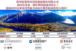 川投能源成功發(fā)行25億元中期票據(jù)創(chuàng)2022年以來(lái)四川省地方國(guó)企中期票據(jù)最低發(fā)行利率