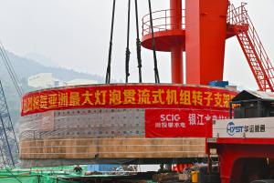 亞洲最大燈泡貫流式機(jī)組轉(zhuǎn)子支架安全抵達(dá) 銀江水電站并順利吊卸