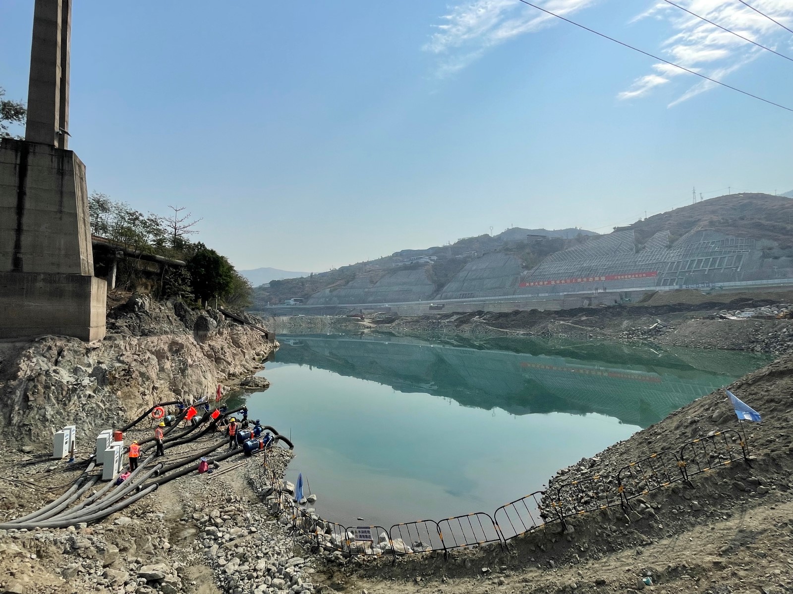面對二期圍堰工期緊等實(shí)際困難,公司組織施工單位合理配置施工資源,精心組織現(xiàn)場施工,水電五局項(xiàng)目部領(lǐng)導(dǎo)春節(jié)期間帶頭堅(jiān)守崗位,施工現(xiàn)場正常組織施工,順利完成二期圍堰閉氣重要節(jié)點(diǎn)目標(biāo),下一階段將重點(diǎn)做好圍堰加高培厚及土工膜安裝工作,確保汛前能按期完成施工;面對銀江大橋爭取2023年春節(jié)前具備通車條件的要求,公司認(rèn)真組織審核施工方案,督促落實(shí)各項(xiàng)安全措施,重點(diǎn)關(guān)注掛籃安裝等工作,1#橋墩0#節(jié)段、右岸連接道路、下穿箱涵開挖等全部按照計(jì)劃順利推進(jìn);面對左岸邊坡開挖支護(hù)、G353國道改建與污水管道代建及地下管線遷改存在的施工干擾問題,公司積極與政府部門及主要參建單位溝通協(xié)商,明確布置方案及節(jié)點(diǎn)目標(biāo),做好交叉施工保障措施,各項(xiàng)工作正按照既定目標(biāo)有序推進(jìn);面對即將來臨的汛期,公司提前組織開展地災(zāi)隱患排查工作,針對檢查發(fā)現(xiàn)的問題下發(fā)整改通知,并督促施工單位認(rèn)真整改,確保汛前完成整改工作。