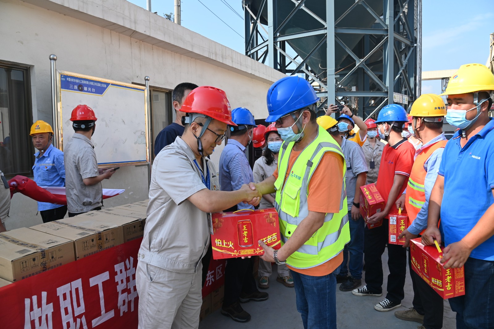 夏日送清涼,溫情暖心坎。本次活動(dòng)為在烈日“烤”驗(yàn)下辛勤勞作的工友們送上清涼飲料、沐浴露、洗衣液、毛巾、紙巾等防暑降溫物資300余份,參建單位長江設(shè)計(jì)、貴陽院監(jiān)理、二灘建設(shè)監(jiān)理、華東院環(huán)水保監(jiān)理、水電五局、水電七局、水電十局、四川路橋等工友代表接受慰問。通過此次慰問活動(dòng),工友們?cè)谘籽卓崾钪懈惺艿搅松钌畹年P(guān)愛和舒心的涼意,大大激發(fā)了工作熱情,大家紛紛表示不懼艱難不怕高溫,將以更加堅(jiān)定飽滿的“銀江精神”投身于工程建設(shè),以實(shí)際行動(dòng)和工作成效向黨的二十大交出滿意的“銀江答卷”。