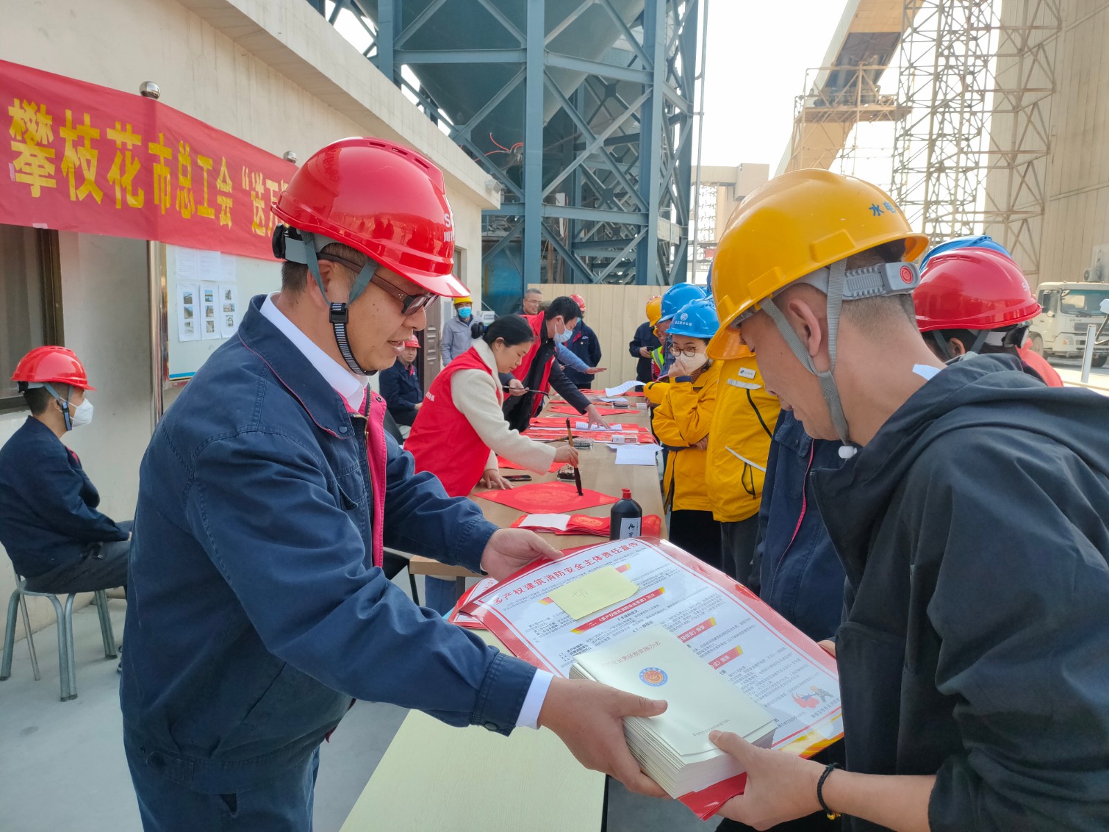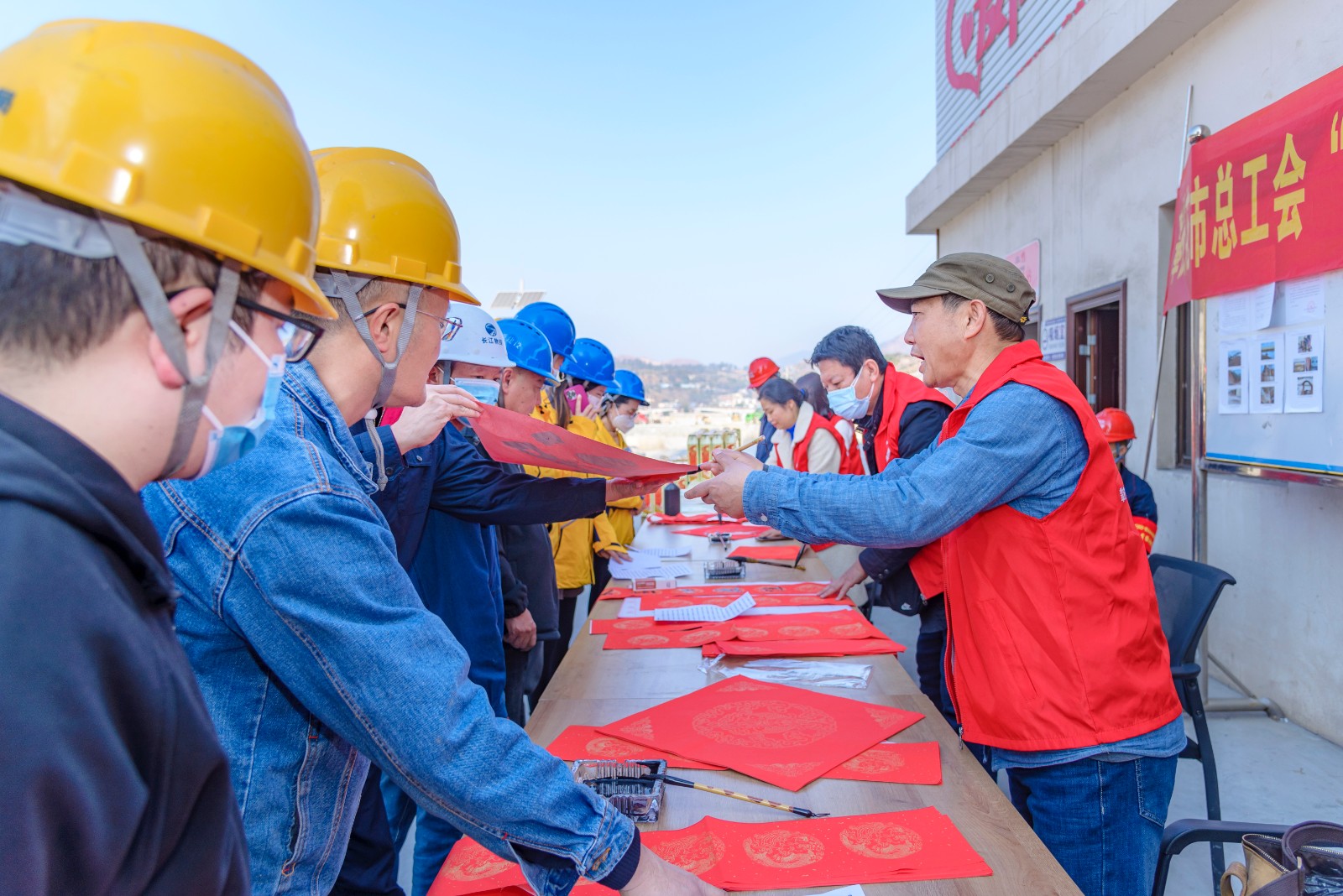 1月17日,公司工會(huì)與攀枝花市總工會(huì)聯(lián)合組織開(kāi)展了送萬(wàn)福、送慰問(wèn)、宣傳消防安全等活動(dòng)。邀請(qǐng)書(shū)法大師為春節(jié)期間堅(jiān)守在工程建設(shè)一線職工繪“?!弊?、寫(xiě)春聯(lián)。在“愛(ài)心驛站”活動(dòng)現(xiàn)場(chǎng),鋪著紅色春聯(lián)紙的桌子呈一字型排開(kāi),書(shū)法大師們帶著滿滿的誠(chéng)意與祝福,揮毫潑墨,大家手捧一副副精美的春聯(lián),一個(gè)個(gè)火紅喜慶的“?!弊忠约靶麓捍蠖Y包,喜悅之情溢于言表。