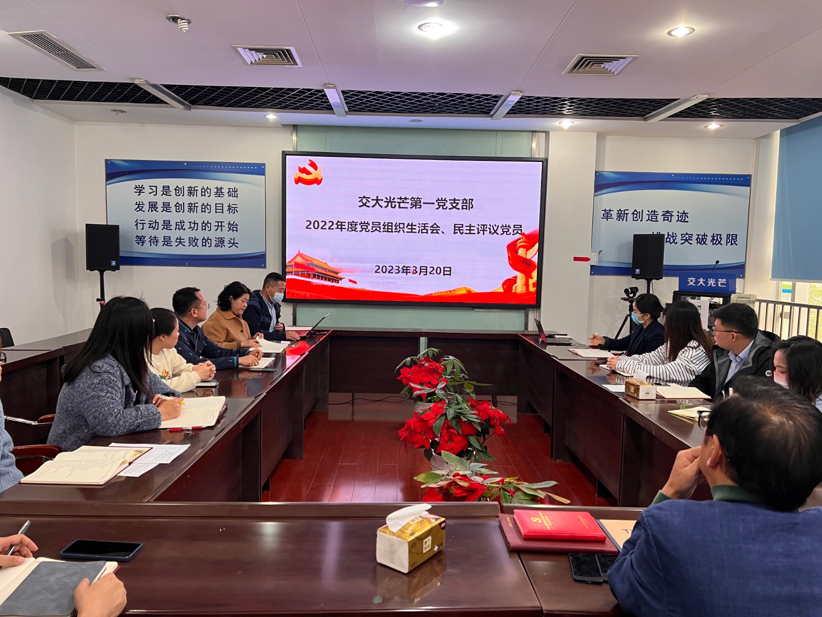 3月20日,按照黨總支工作部署要求,交大光芒第一黨支部召開了2022年度組織生活會并開展民主評議黨員。公司黨總支書記、總經(jīng)理劉成輝到會督導(dǎo)并點評。第一支部書記、公司副總工程師兼研發(fā)中心副總經(jīng)理王輝博士主持會議。黨總支委員汪志橋按照雙重組織生活要求,以普通黨員身份參加支部組織生活會。