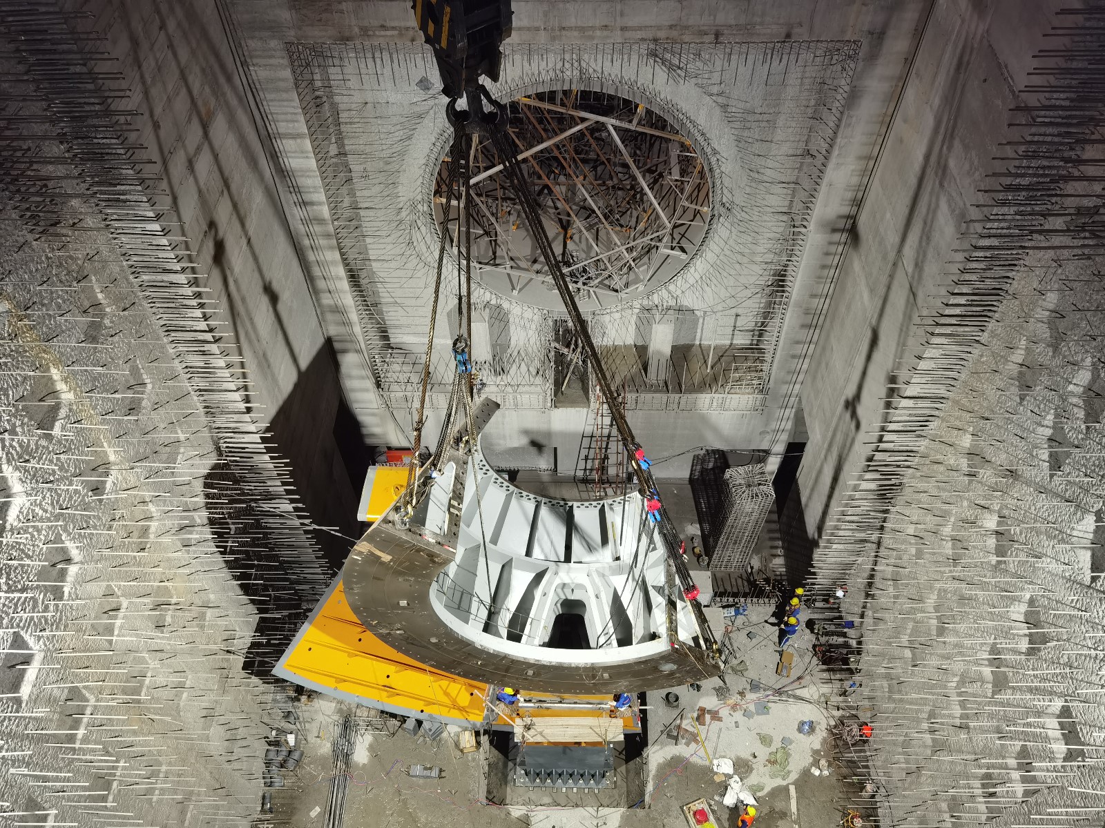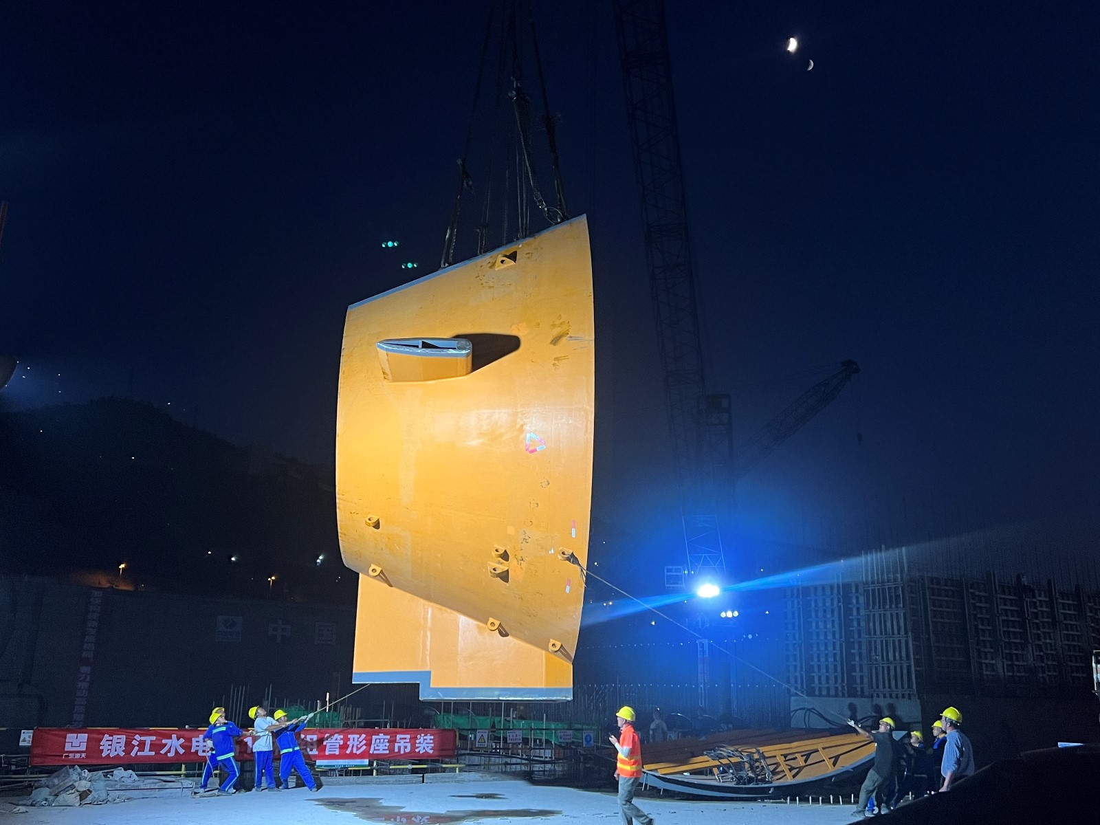 10月20日履帶吊車試吊驗收及下固定導(dǎo)葉順利吊裝完成后,從20日16點開始至21日20:00結(jié)束,歷經(jīng)運輸、翻身及吊裝三個階段長達18個小時工作,管形座最重件第一瓣內(nèi)殼在公司領(lǐng)導(dǎo)的現(xiàn)場指導(dǎo)下穩(wěn)穩(wěn)落至安裝位置,后續(xù)公司將組織參建單位一鼓作氣將首臺機組管形座剩余內(nèi)殼、外殼、前錐體及固定導(dǎo)葉等悉數(shù)吊裝到位,力爭年底完成安裝工作,為實現(xiàn)2025年一季度首臺機組投產(chǎn)發(fā)電目標(biāo)打下堅實基礎(chǔ)。
