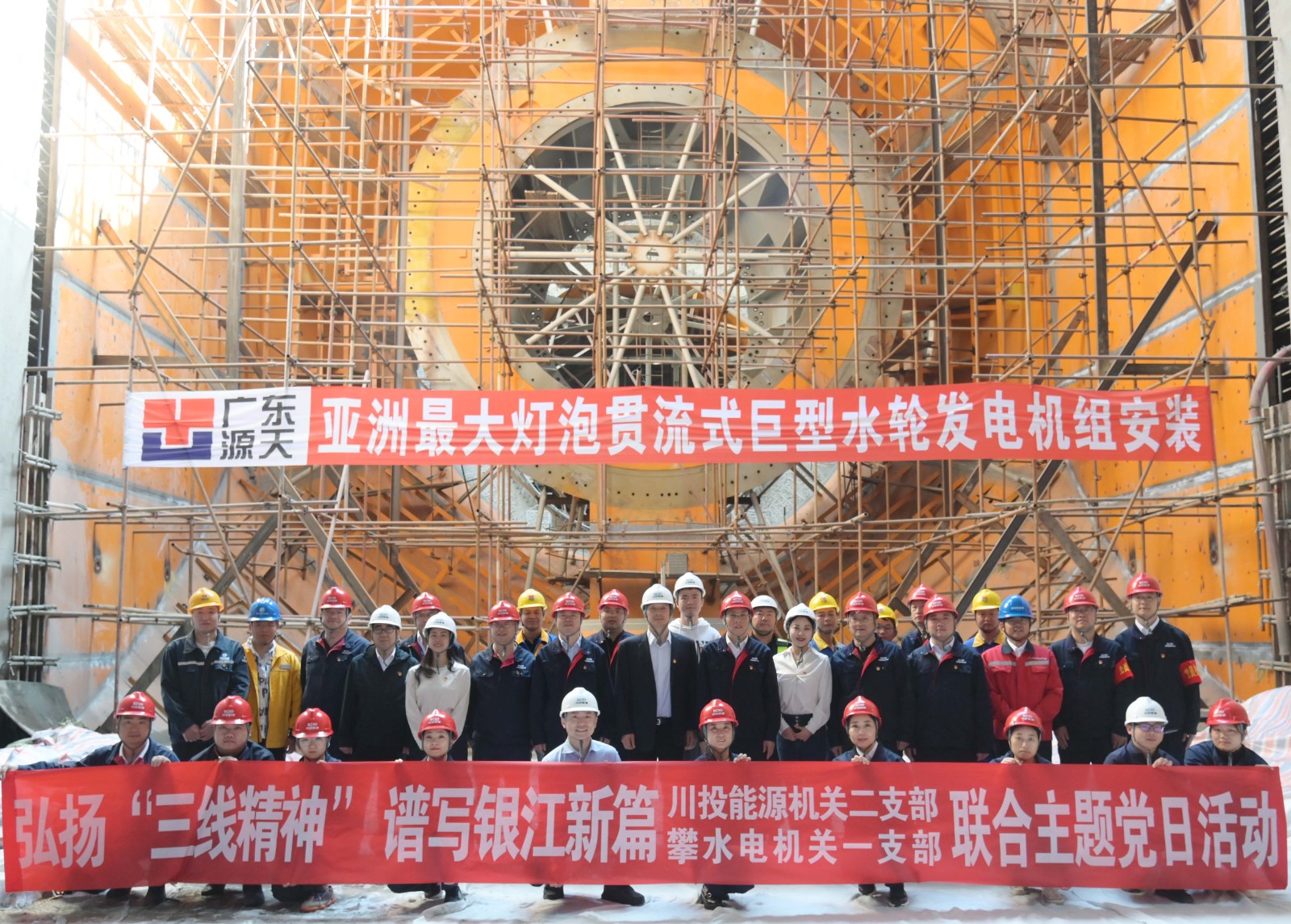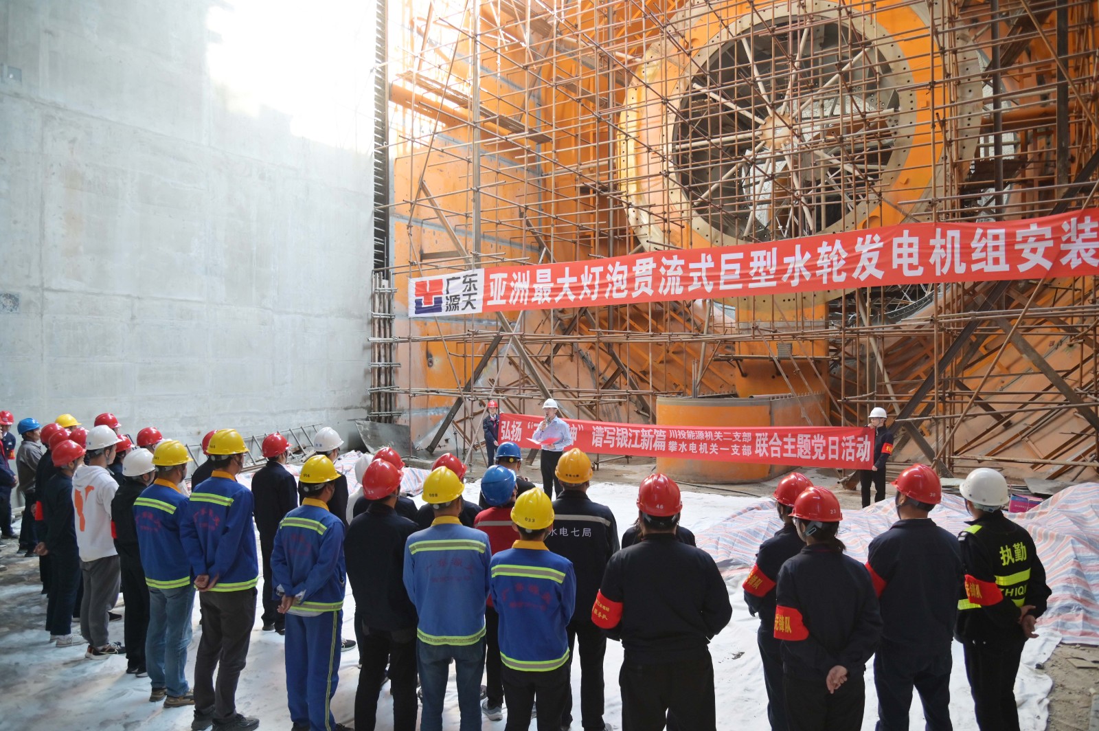 在銀江水電站亞洲最大燈泡貫流式巨型水輪發(fā)電機組安裝現(xiàn)場,川投能源機關(guān)二支部書記李睿講授了工地微黨課《承諾》,與大家一起重溫銀江水電站建設(shè)過程中的感人故事?;顒又?,徐孝剛用通俗易懂的語言,為現(xiàn)場同志介紹了銀江水電站的建設(shè)特點、施工情況和下一步工程建設(shè)計劃,并號召全體黨員和團員青年要圍繞“保一爭二”提前發(fā)電重要目標,團結(jié)一心、勇挑重擔(dān)、善作善成。