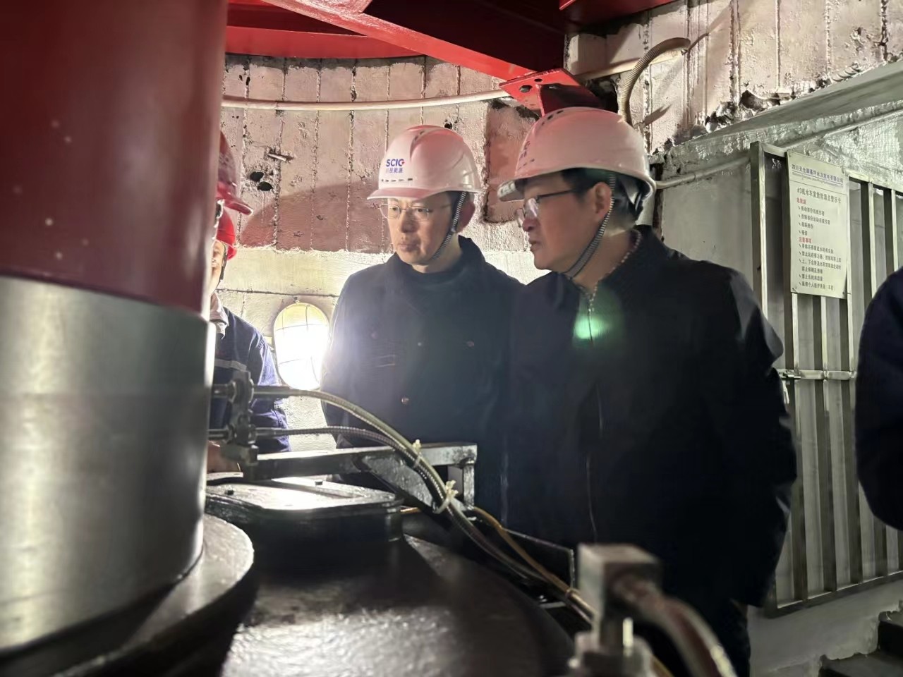 楊平一行實地察看電廠主廠房、發(fā)電機主設(shè)備、蝶閥、應(yīng)急物資儲備等情況,翻閱抽查風(fēng)險隱患管理及水淹廠房應(yīng)急管理等資料,指出存在問題,提出工作要求。