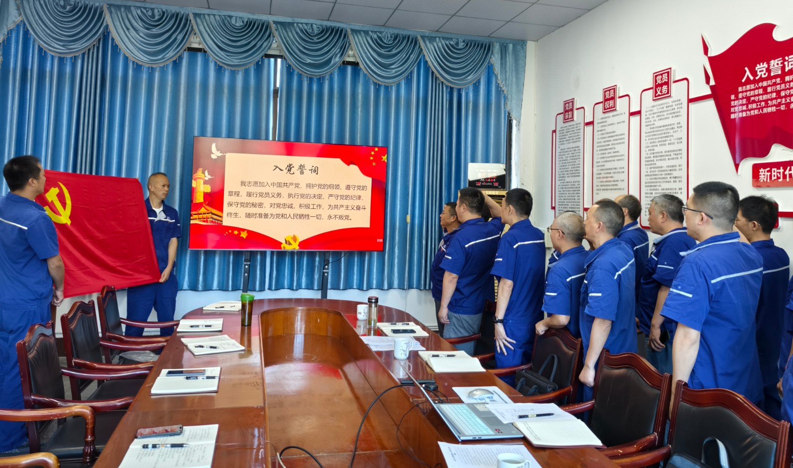 王力生以《黨的光輝歲月》為題講授黨課。深情回顧我們黨103年來的輝煌經(jīng)歷和艱辛探索,教育引導(dǎo)全體黨員深刻認(rèn)識到黨奮斗歷史的艱辛不易,緬懷革命先輩的豐功偉績,傳承他們的革命精神。隨后,王力生帶領(lǐng)全體黨員面向黨旗,重溫入黨誓詞,堅(jiān)定理想信念。