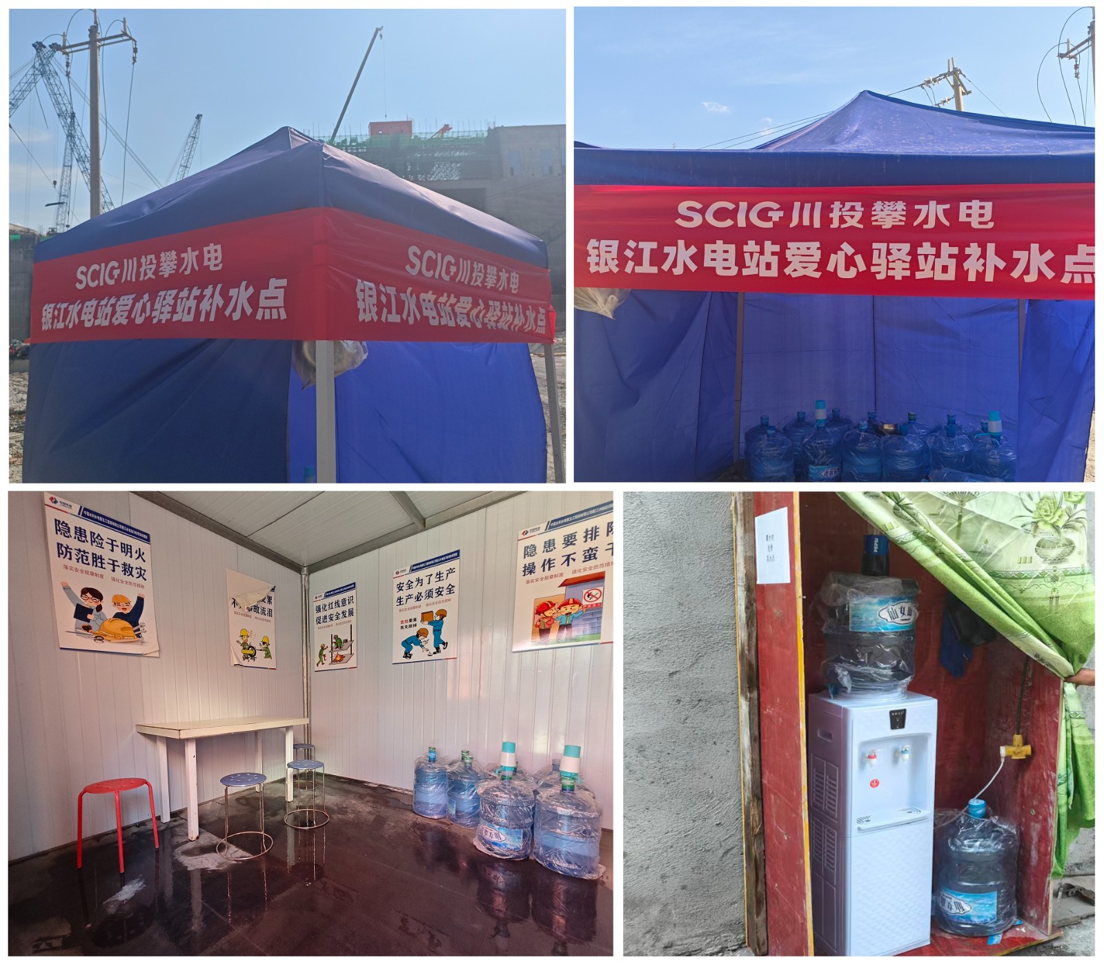 鑒于近期天氣炎熱,持續(xù)高溫給一線工人作業(yè)帶來了巨大挑戰(zhàn),為解決一線工人在施工過程中“飲水難”的問題,公司在銀江水電站壩頂、GIS樓、副廠房、魚道、溢流壩等施工人員密集的部位建立了五處“愛心補(bǔ)水站”,完善送水補(bǔ)水機(jī)制,為奮戰(zhàn)在烈日下的工友們送去了絲絲涼意與深切關(guān)懷,此舉為大家解決了實(shí)際困難,贏得了工友們的廣泛贊譽(yù)。