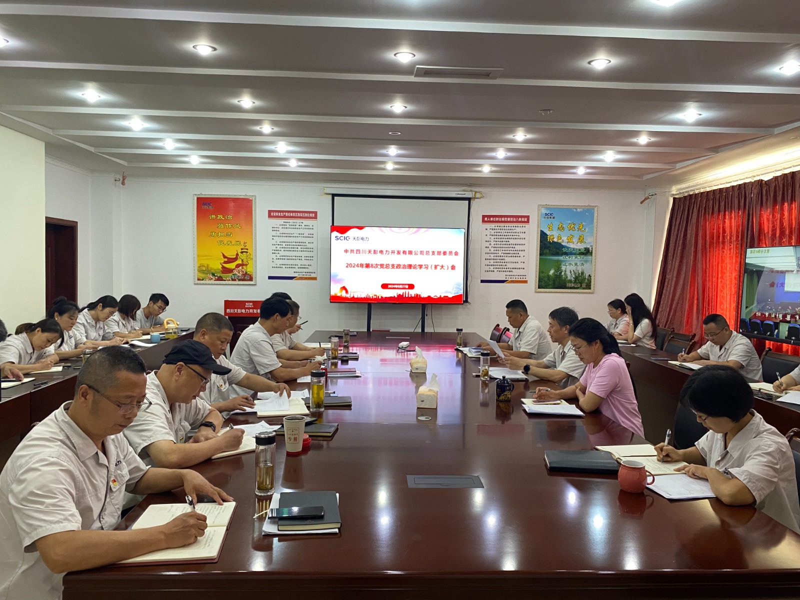 會議強調(diào),公司各級黨組織和廣大黨員干部要切實提高政治站位,深學細悟全會精神,找準全會精神與公司工作的結(jié)合點,明確目標、細化措施、壓實責任,把學習成果轉(zhuǎn)化為推動工作的強大動力,推動全會精神在公司落地生根、開花結(jié)果。要緊密結(jié)合實際,在抓好主業(yè)的同時密切關(guān)注地方政府在新能源項目方面的動態(tài)和政策,搶抓機遇擴大公司經(jīng)營規(guī)模,真抓實干推動發(fā)展。要針對當前汛期工作,密切關(guān)注氣象地災預警信息,加強防汛值班和巡視檢查,做好防汛減災應急準備,并利用汛期豐沛來水組織好發(fā)電生產(chǎn)。