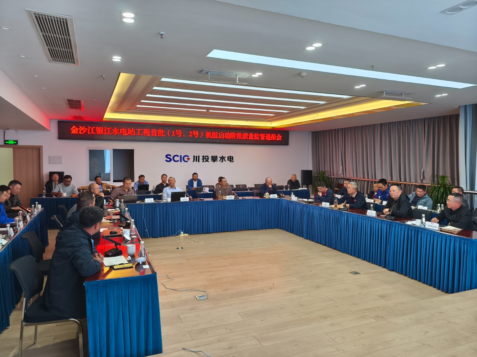 專家組抵達(dá)現(xiàn)場(chǎng)后,立即安排質(zhì)量監(jiān)督工作,在川投能源副總經(jīng)理、攀水電公司黨總支書記、董事長徐孝剛,攀水電公司黨總支副書記、總經(jīng)理吳巍嶼及各參建單位相關(guān)負(fù)責(zé)人的陪同下,深入施工一線,對(duì)施工現(xiàn)場(chǎng)溢流壩泄洪孔和電站廠房進(jìn)出水口閘門使用及運(yùn)行情況,1號(hào)、2號(hào)機(jī)組及副廠房公用設(shè)備系統(tǒng)安裝和調(diào)試情況,首批機(jī)組啟動(dòng)形象面貌完成情況等進(jìn)行了詳細(xì)檢查,并在現(xiàn)場(chǎng)與大家初步交換了意見。結(jié)合現(xiàn)場(chǎng)檢查情況,組織對(duì)各參建單位相關(guān)內(nèi)業(yè)資料進(jìn)行檢查,形成了質(zhì)量監(jiān)督意見。在進(jìn)行多次檢查和交流后,向方偉在攀水電公司2620會(huì)議室主持召開了銀江水電站首批(1號(hào)、2號(hào))機(jī)組啟動(dòng)階段質(zhì)量監(jiān)督檢查通報(bào)會(huì),攀水電公司主要領(lǐng)導(dǎo)、工程管理部、安全環(huán)保部負(fù)責(zé)人及各參建單位負(fù)責(zé)人共40余人參加會(huì)議。專家組與各參建單位進(jìn)行了充分討論并交換意見,形成了銀江水電站首批(1號(hào)、2號(hào))機(jī)組啟動(dòng)階段質(zhì)量監(jiān)督報(bào)告。